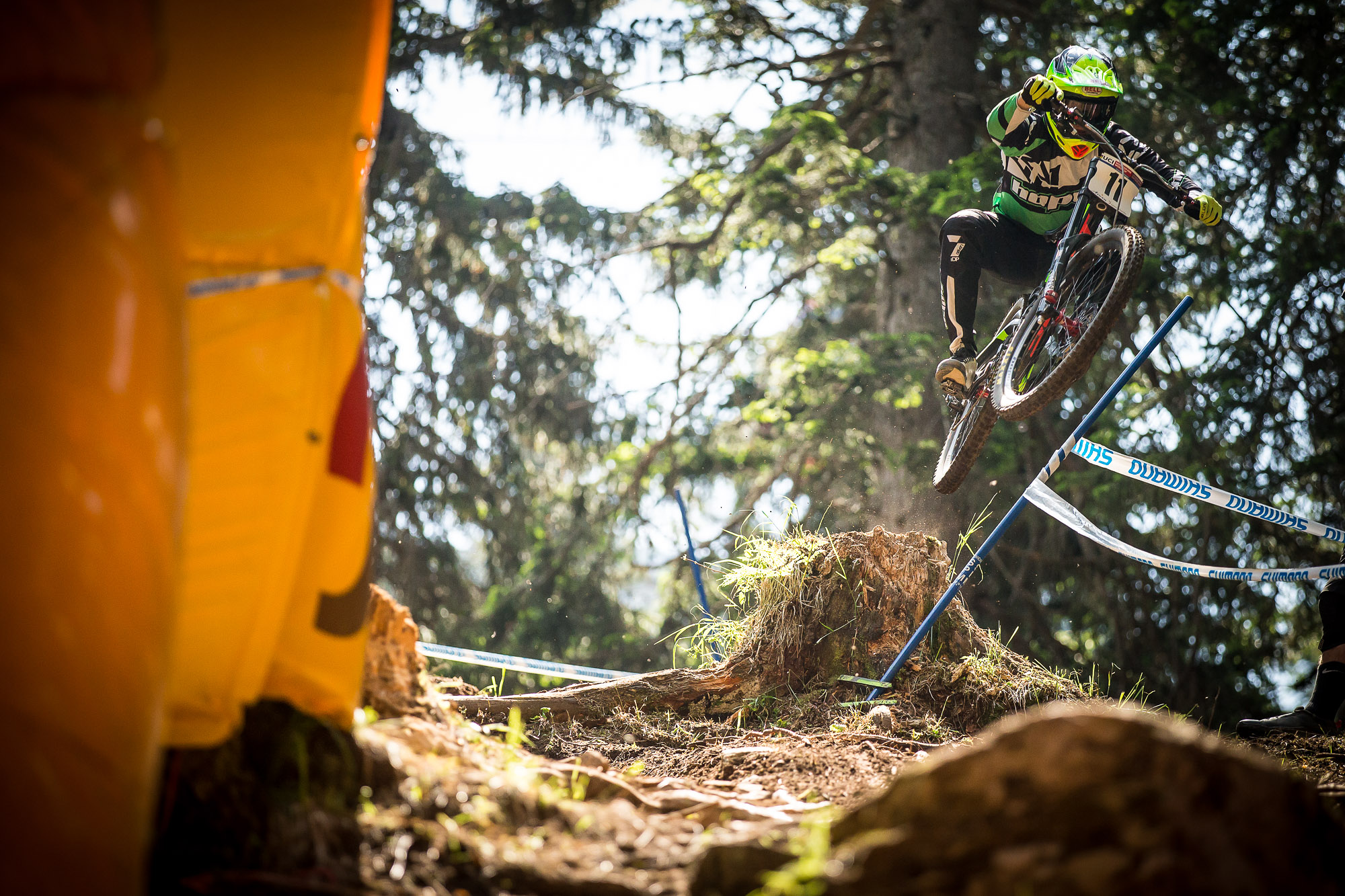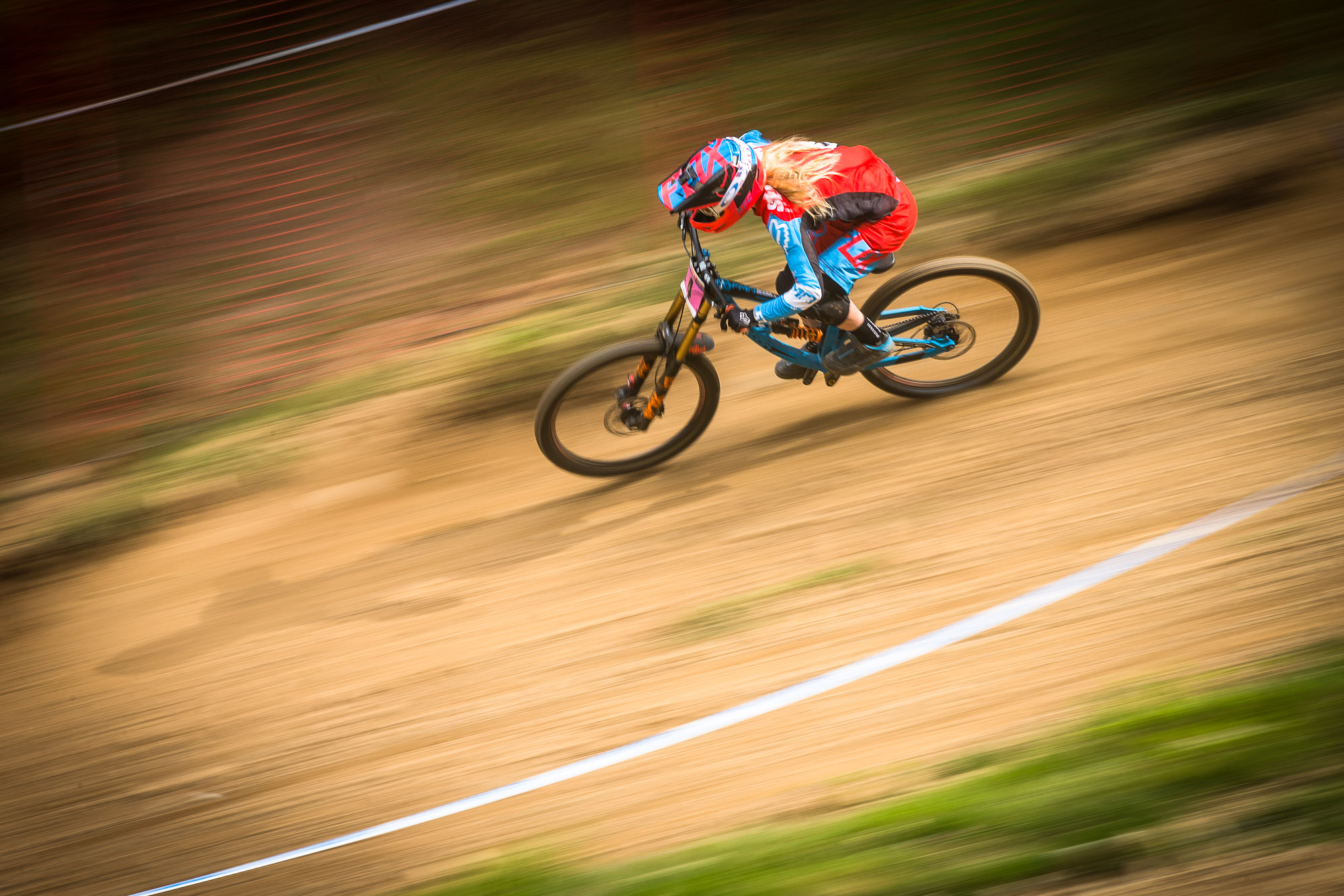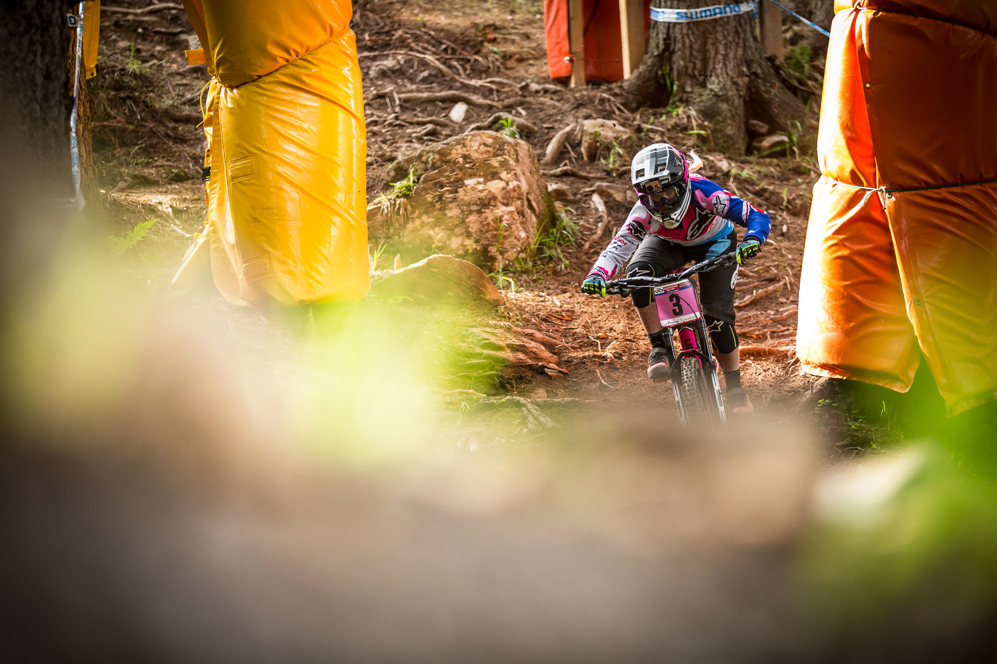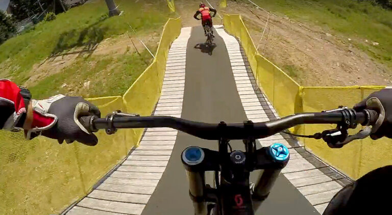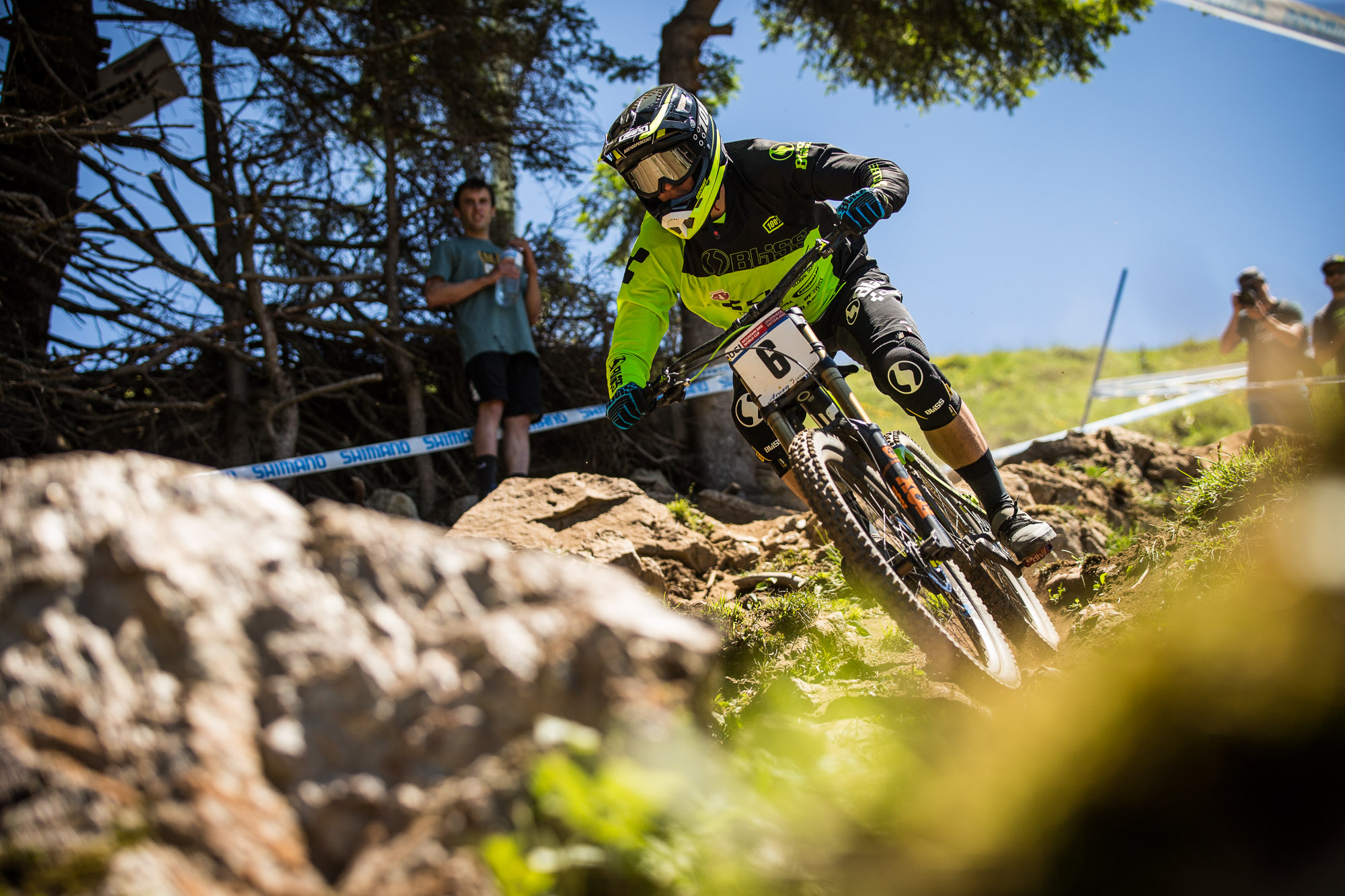 This is a track that on the surface looks pretty simple, but to race it successfully you need to be in the zone, to find the right pace, to get the grip and link it all together. The first rock section is only about 25 seconds into the track yet get it wrong and it will affect your rhythm and perception of your run. Many riders I spoke to at the finish line mentioned that they had got this section wrong and that had then had a knock on effect to the rest of their run.