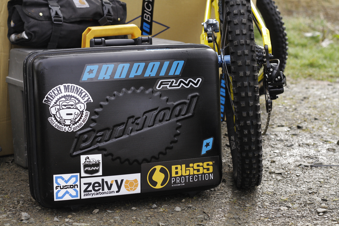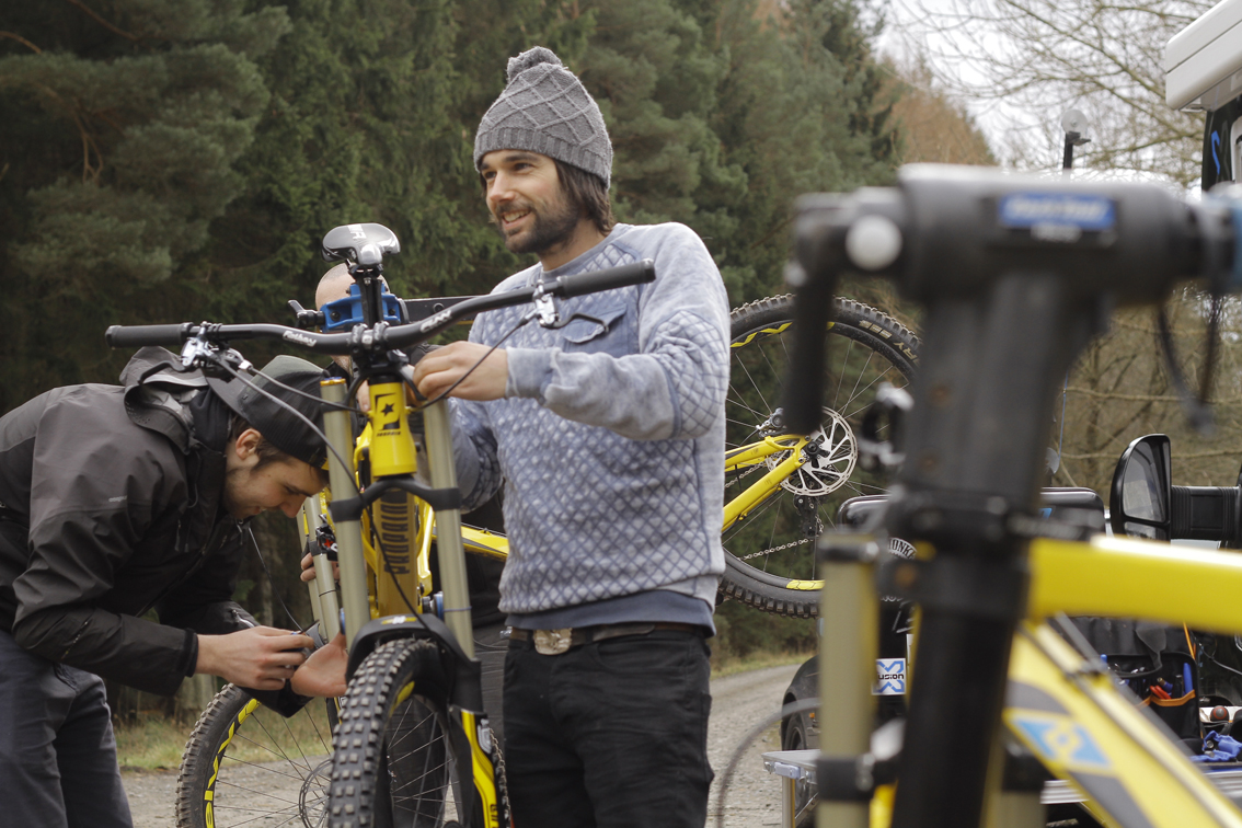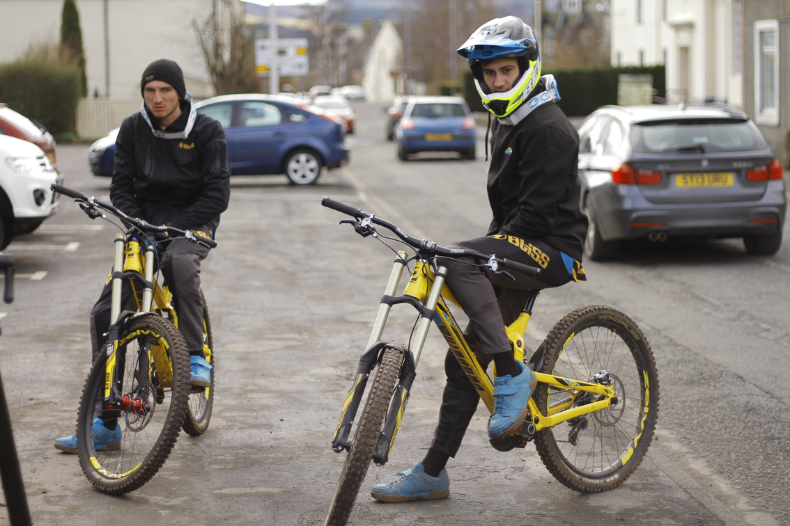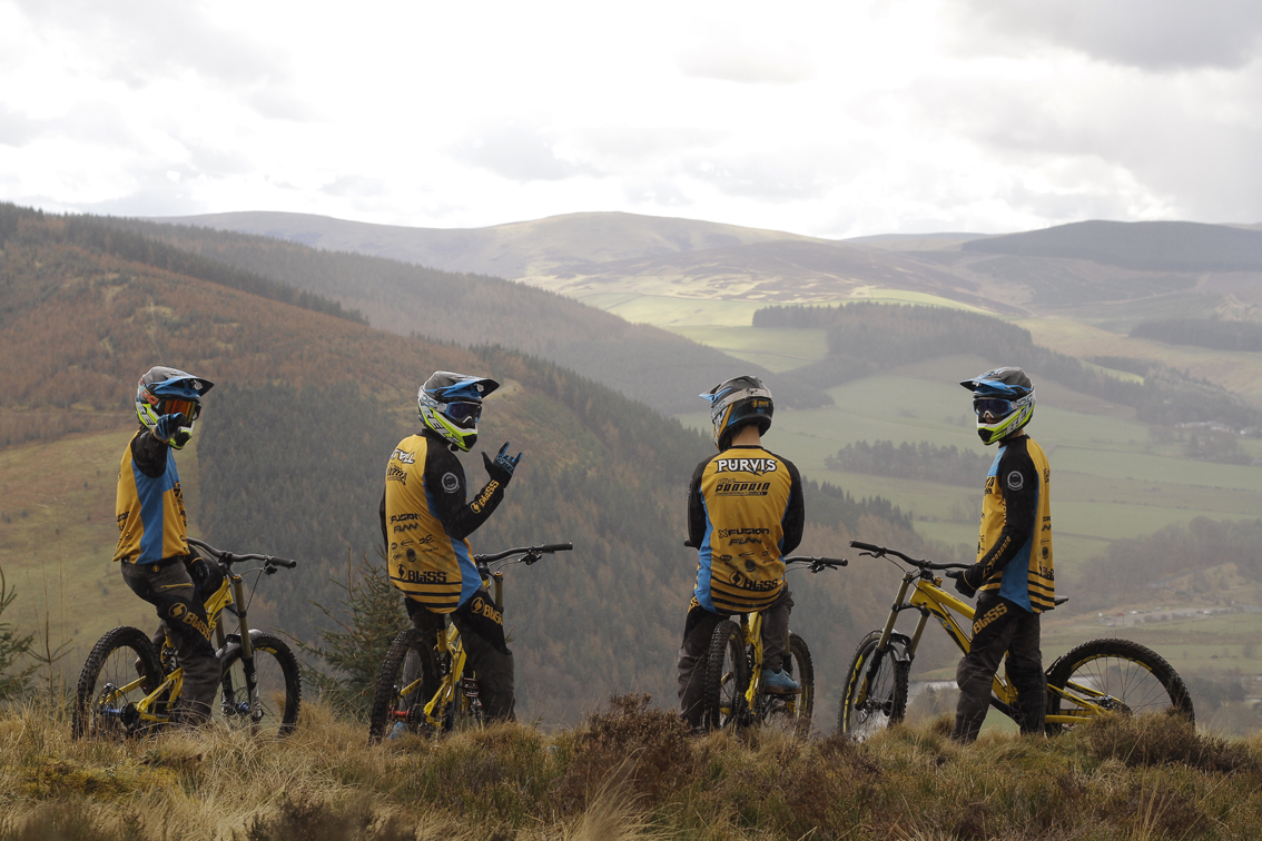 Just before the team hits the first BDS round at Ae Forest this weekend, and then the first World Cup in Lourdes, we gathered in the famous town of Innerleithen in the Scottish Borders for several days to fine tune the new Propain Rage DH bikes, shoot photos, video and nail down the full set–up for 2016 only with the absence of our resident Viking Isak Leivsson, who stayed home to undergo physio on his shoulder to be fighting fit for the first world cup in Lourdes.