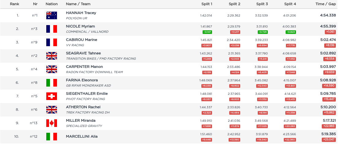 Coming into the final sector, it looked like Myriam Nicole would be fastest at Commencal’s home race, but Hannah pulled back nearly two seconds to claim top spot.