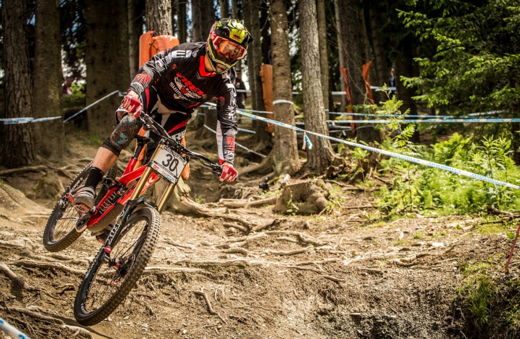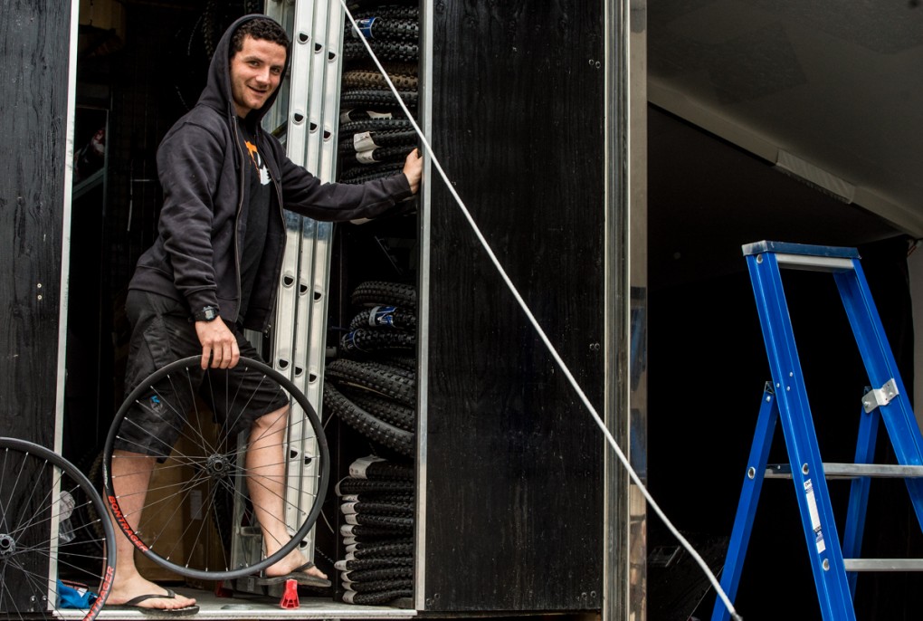 The track gets a lot of complaints about being too ‘bike park’ and not gnarly enough for a WC, but selfishly I want the race to keep coming here, and I think a lot of the WC staffers would agree. For me, it’s simply the best one to work at. The hotel we stay each year is 50 metres from the pits, and each night we are served a five-course meal of all-local cuisine. The gondola goes from the edge of the pits and is a seven-minute trip to the top, so it’s really easy to time getting up there for quali and race. Finally, there is a massive play park at the top of the track, where the riders warm up on their turbo trainers. I’m pretty sure it’s for kids but the mechanics seem to enjoy it, and it’s a funny scene at the top with riders warming up, focused and going through their lines in their heads, while mechanics push each other on the swings.