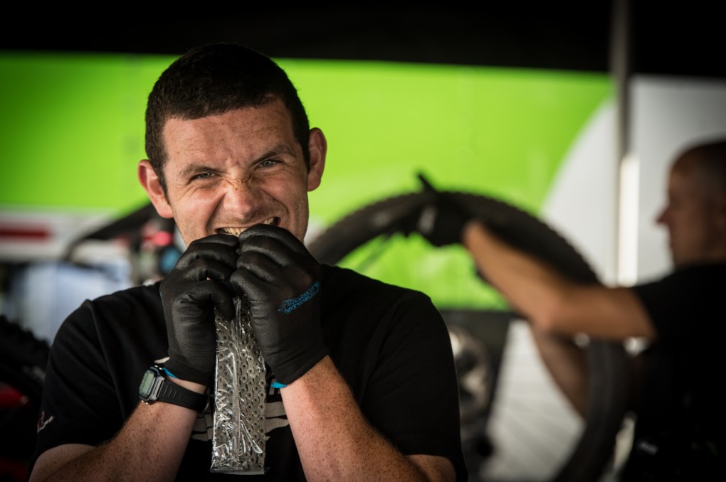 Race morning is about the only time I get nervous in a race weekend and usually as soon as my alarm goes off I lie in bed going through everything I’ve done so far in the weekend, and everything that can potentially happen. It’s all too easy to get bogged down and start thinking about the chances of something going wrong, but I’ve learned to put it aside and concentrate on doing the best that I can on that day. After some practice laps, Laurie told me he was finished and this is my cue to get the bike ready for the race run. This starts with a wash, then a systematic check of everything on the bike, usually a new chain and a polish for good measure. Once this is done I get the warm-up bike and trainer ready for Justin to take up for Laurie. With the timings of the junior World Cup I am usually preparing Greg’s bike for his run when Laurie sets off for his run. Martin and Paul who are at the finish will relay back results over the radio and for this race, we are jumping with joy when Laurie crosses the line in the lead, with one rider to go. At this stage, a second place is still Laurie’s best World Cup result by far so we exchanged high fives in the pits and waited to see how the favourite French rider did. He eventually crossed the line in first, but it was a good start to the day!