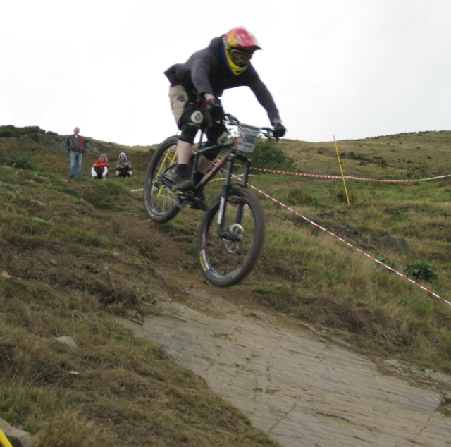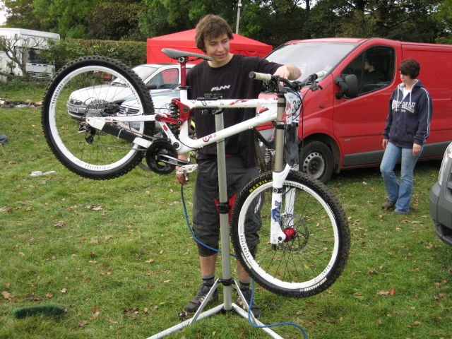 Cant make out the number of 2nd down sorry fella ! next on the white dmr is Tim Webb a vet in HT he’s older than me and Billy, he battered the living piss out of himself on the first run and was unable to do the 2nd. Then we have Stuart Bond on a black NS, first run put him in 2nd place, on the second run he pulled the back tyre off the rim which in turn ripped off the mech, took a while to fix but he still managed to finish the run, never say die, if you can carry the bike or just get it rolling then a late finish over a DNF anyday. All in a good weekend, as it’s the season ender and 2010 stuff is starting to crop up, well pure riders and descent-gear had an end of season sale on, and there was a carboot vibe as a lot of riders where having a clearout, it’s worth going just to walk round the carpark and do some shopping if you dont mind second hand or last seasons fashion, if i had the cash i could have bought some new (to me) race gear. Aim to race it next year. check the links for info and stuff.