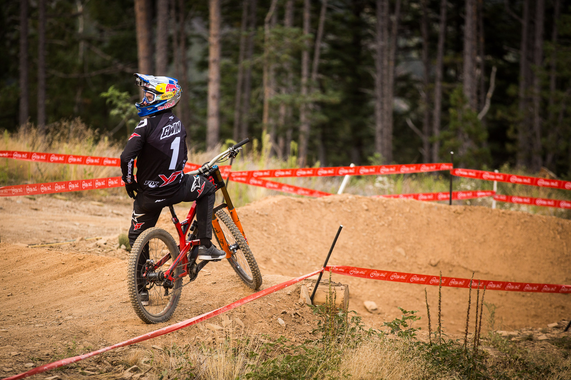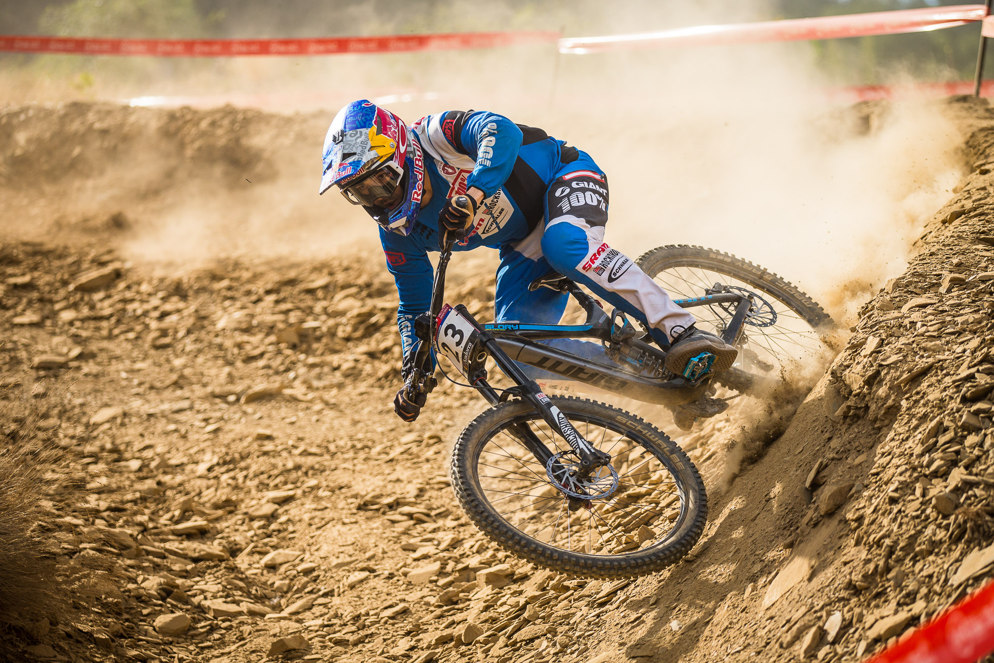 Racers were riding a thin line. Morgane Charre cased the first big jump on the jump section and is out. Probably a broken scaphoid.