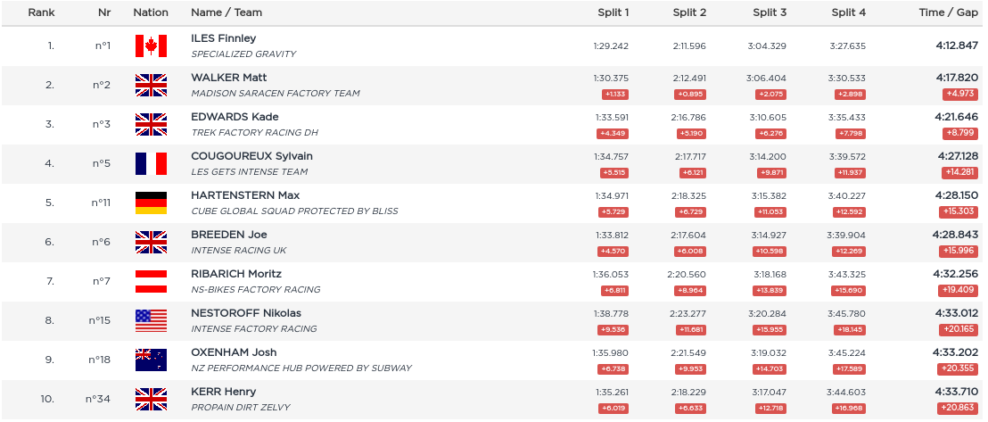 Only Iles was left at the top and from the first split he was clearly on a hot one. By the end of the run it was total decimation. Yesterday he looked catchable today he looked unstoppable.