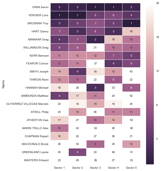 So, putting it all together in the heatmap and position tracker, we can see that Gwin again won it with crushing speed and consistency – fastest or second fastest in all five sectors. While Vergier held the lead for the first two sectors he couldn’t match Gwin for the whole run.