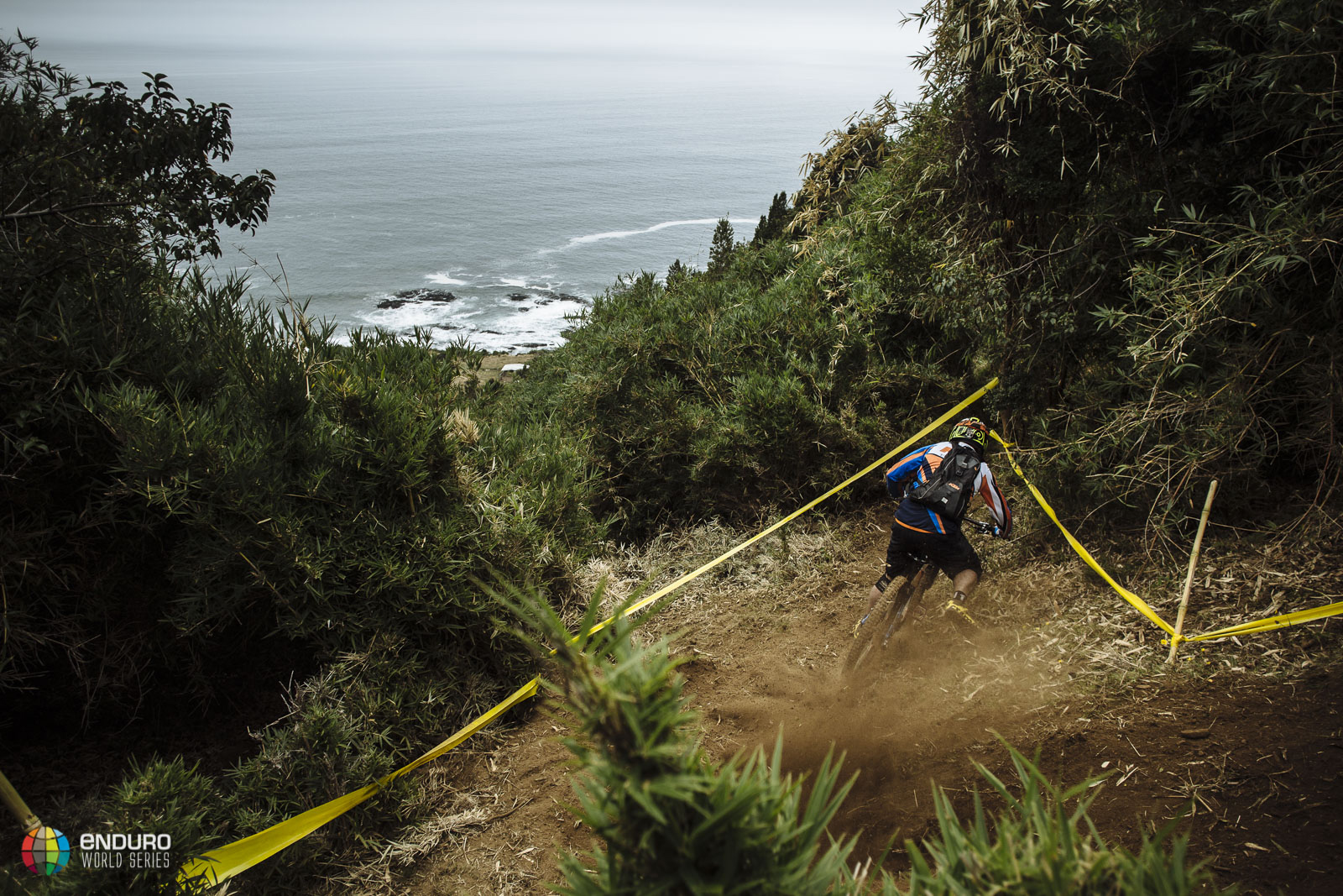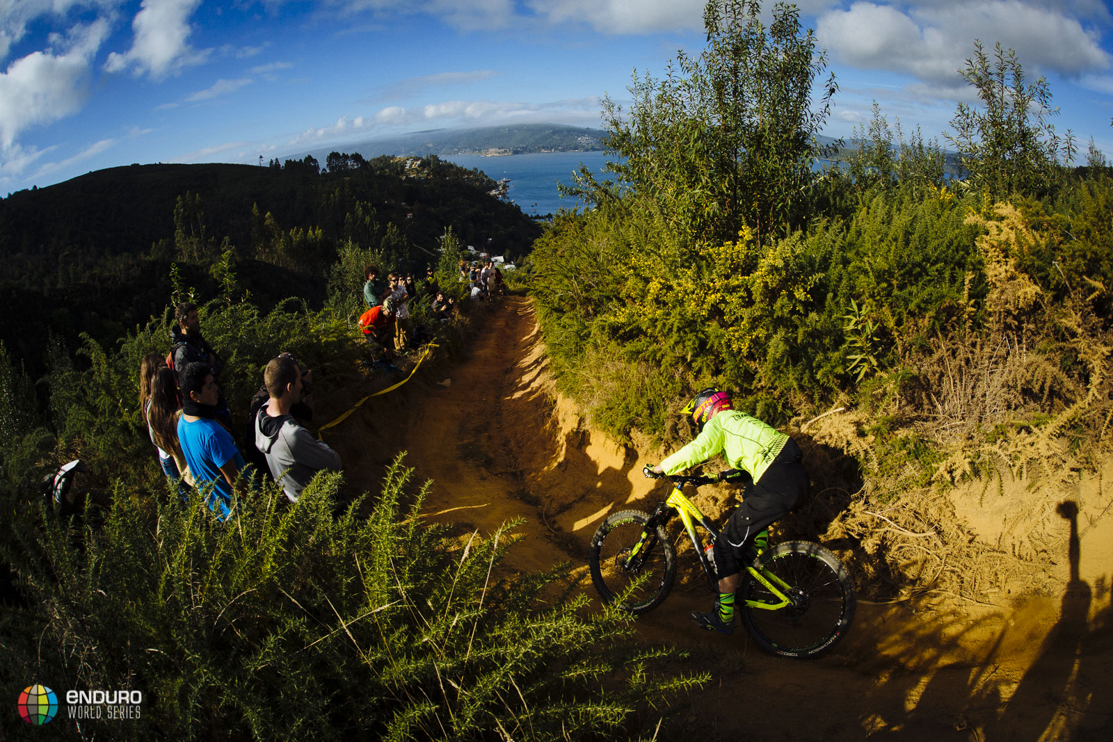 After a forest fire broke out in the hills above the venue in Corral on Friday night, race organisers had to consult with emergency services who decided on Saturday morning that the race could go ahead safely. So over 400 riders headed out to the trails in the area known locally as the ‘cold jungle.’ Riders were rewarded for climbing the long liaisons under a hot Chilean sun by steep, freshly cut trails that offered glimpses of the Pacific Ocean on the way down.