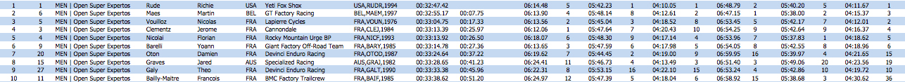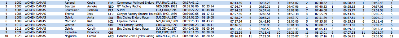 In the Under 21 Men reigning World Champion Adrien Dailly (Lapierre Gravity Republic) proved too strong for Sebastien Claquin (Rocky Mountain Urge BP) who finished second and Chilean rider Pedro Burns (Ibis Cycles Enduro Race) who came third. Karim Amour took a convincing win in the men’s Masters 40+ category. Lapierre Gravity Republic now lead the team category, with Rocky Mountain Urge BP in second and Devinci Enduro Racing in third.
