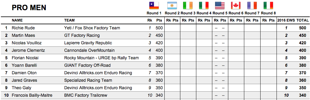 The Enduro World Season couldn’t have got off to a more dramatic start as Richie Rude (Yeti/Fox Shox) and Cecile Ravanel (Commencal Vallnord Enduro) won the first race of the season, the Montenbaik Enduro World Series in Chile.