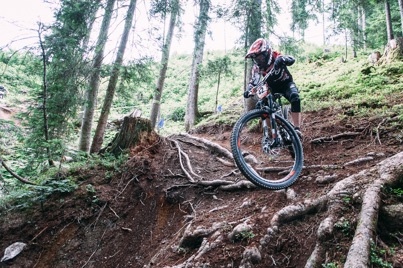 Stages 4 and 5 utilised the Fleckalm trail, well renowned in this area, but split in to two. Organiser Georgy Grogger said they split the trail halfway as he wants these events to be a stepping stone for riders working towards EWS standard events, a Central European series with a national level standard. Top to bottom in one go would have been around 17/18mins for the top guys! These trails had a varied terrain of pea gravel berms, muddy roots and high speeds across the winter pistes.