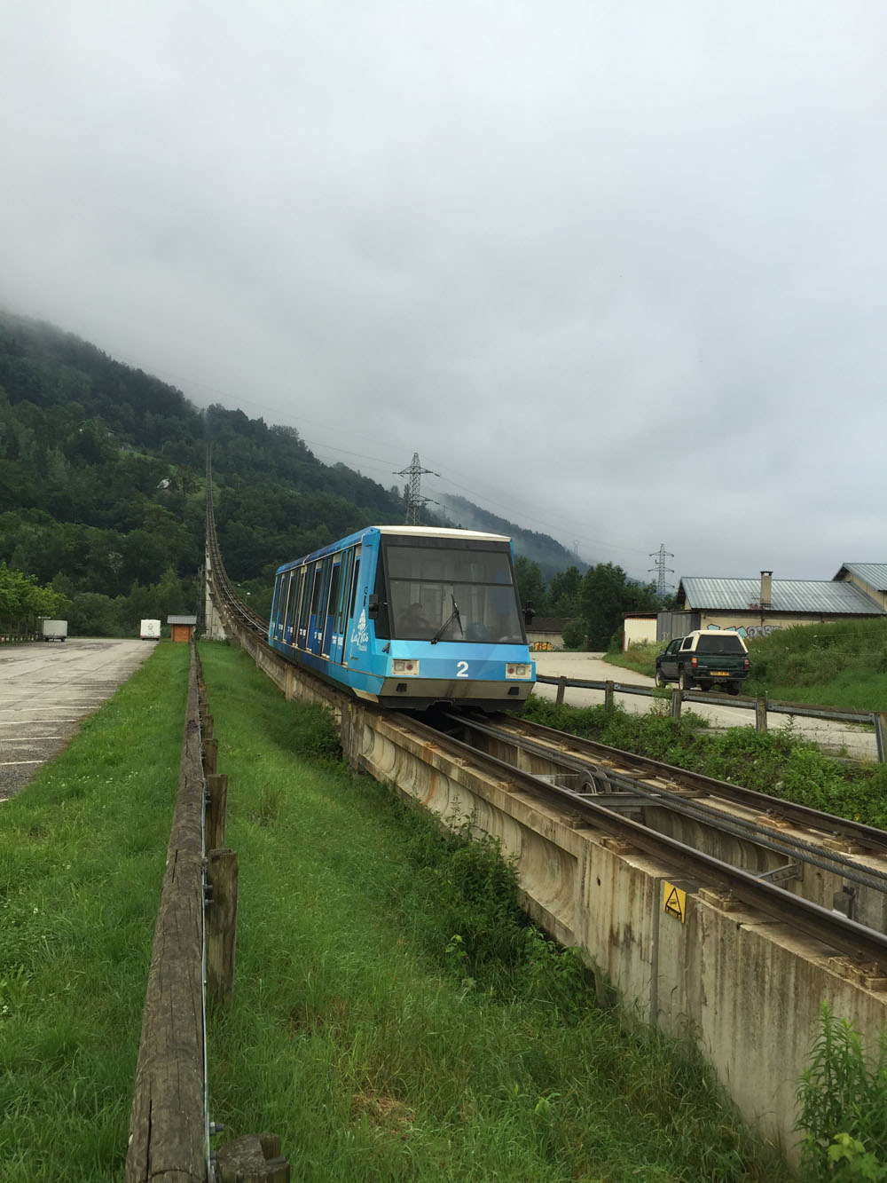 The funicular is a novel way to get to Les Arcs from Bourg – it gets steep!