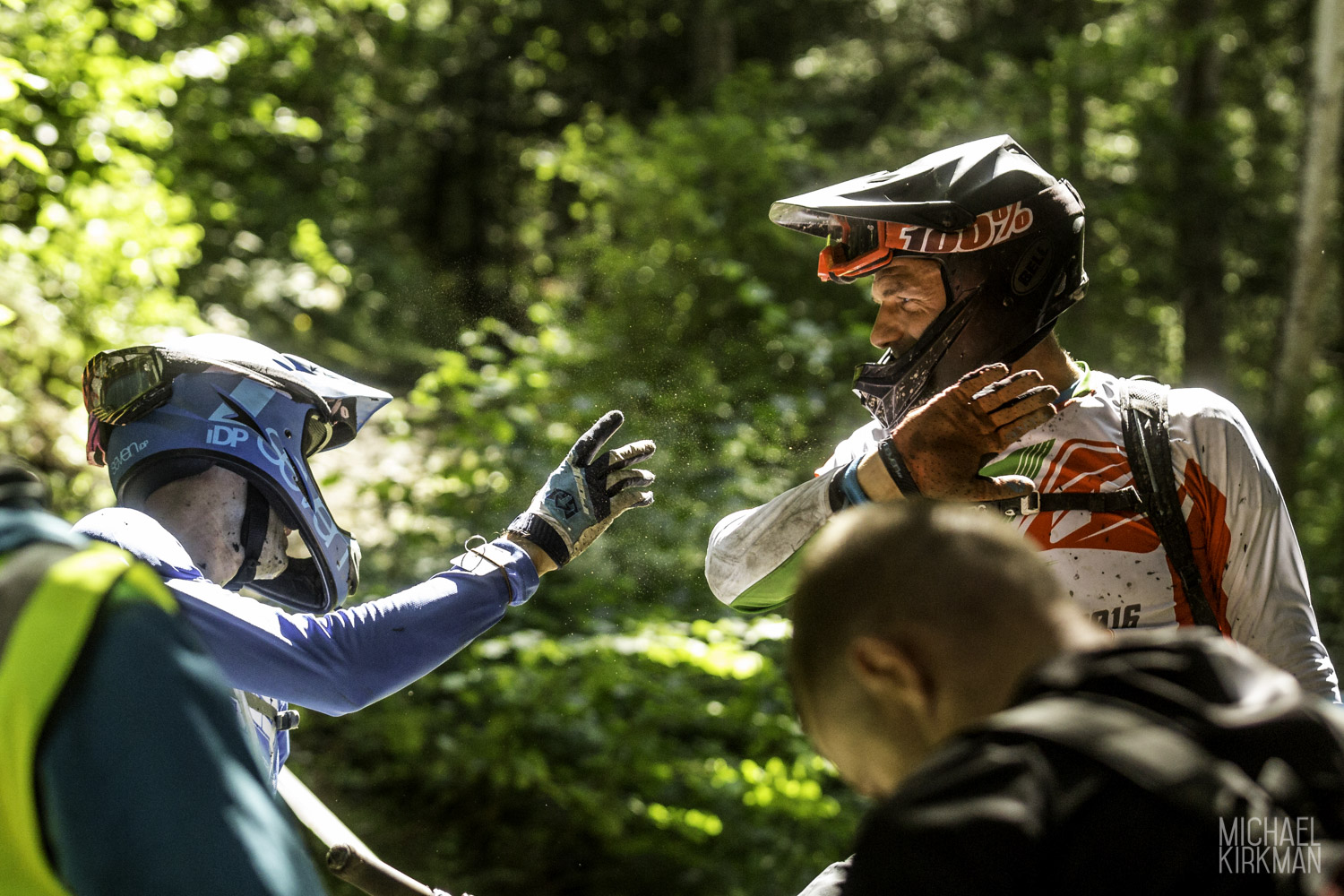 So after around 50 mins of gravity fed trail racing James and I were stoked to have survived the day without crashing or suffering punctures or mechanicals, the first goal of the event for us. For the Brits, the Shucksmith’s had dominated, setting the fastest stage times on five of the six stages, only losing out due to Sam puncturing about halfway and riding it out, they still held 2nd place overnight. Ian Austermuhle’s team representing Hope missed some tapes and had a few spills but were still holding 6th, we had stayed consistent and meant we were up to 9th, one second behind the team in front….the final day was on!