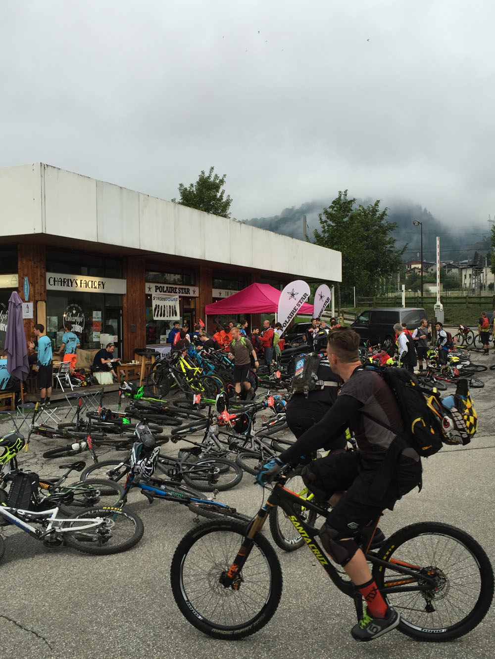 On arrival Friday at the event, a lot of people were shuttling to the trails (many people were returning from last year so knew where to go) and getting some riding time in before the race kicked off the next day, on first impressions the trail I rode was bloody good fun and exactly what I came out to the Alps to ride- 10mins, mixture of wooded single track, double track and tight switchback turns – awesome!