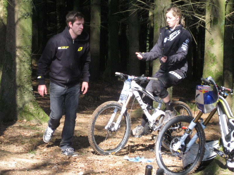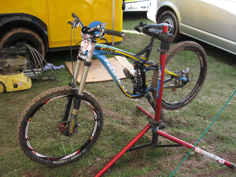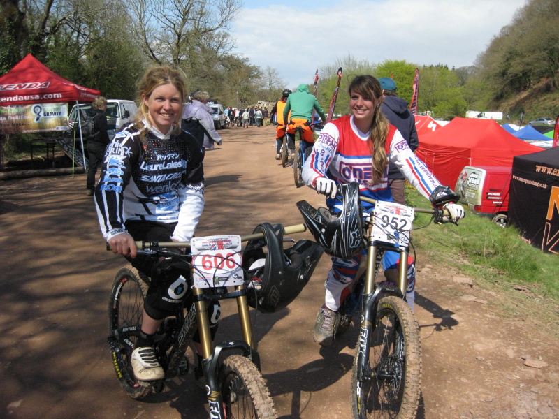 I got up to the start to catch some seeding run action, only ever having done one national before (07 Rheola, the very very wet one) well I am used to hanging out in the hardtail category which mostly involves being unhealthy and hoping your bodged up bike makes the run. Haven’t seen this before, turbo trainers ? and a quick pre run workout from the girls.