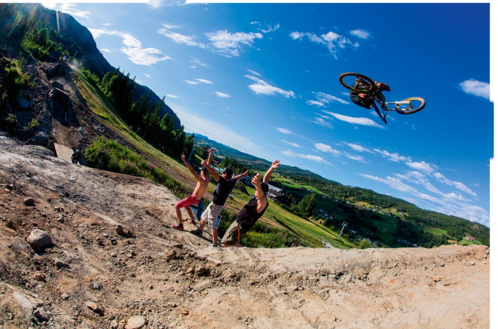 We get to the farm and met up with local legend and course mastermind Mads ‘Makken’ Haugen who gave us a bit of a tour, which was basically standing at the top of the course just jumping about shouting with excitement and scrambling to get pads on as fast as possible and join the already wild session. Other than Makken and Reynolds there where some other big names in attendance. An elite hit–squad of freeriders was invited out including Nick Pescetto, Andreu Lacondeguy, Nico Vink, Kurt Sorge, Graham Agassiz, Louis Rebul, Trond Hansen plus a load of other local wild men. With the entry being hand chosen by Makken, with rules like ‘No French, No Nerds’, etc. (Louis made the cut as he is just an animal on and off the bike).