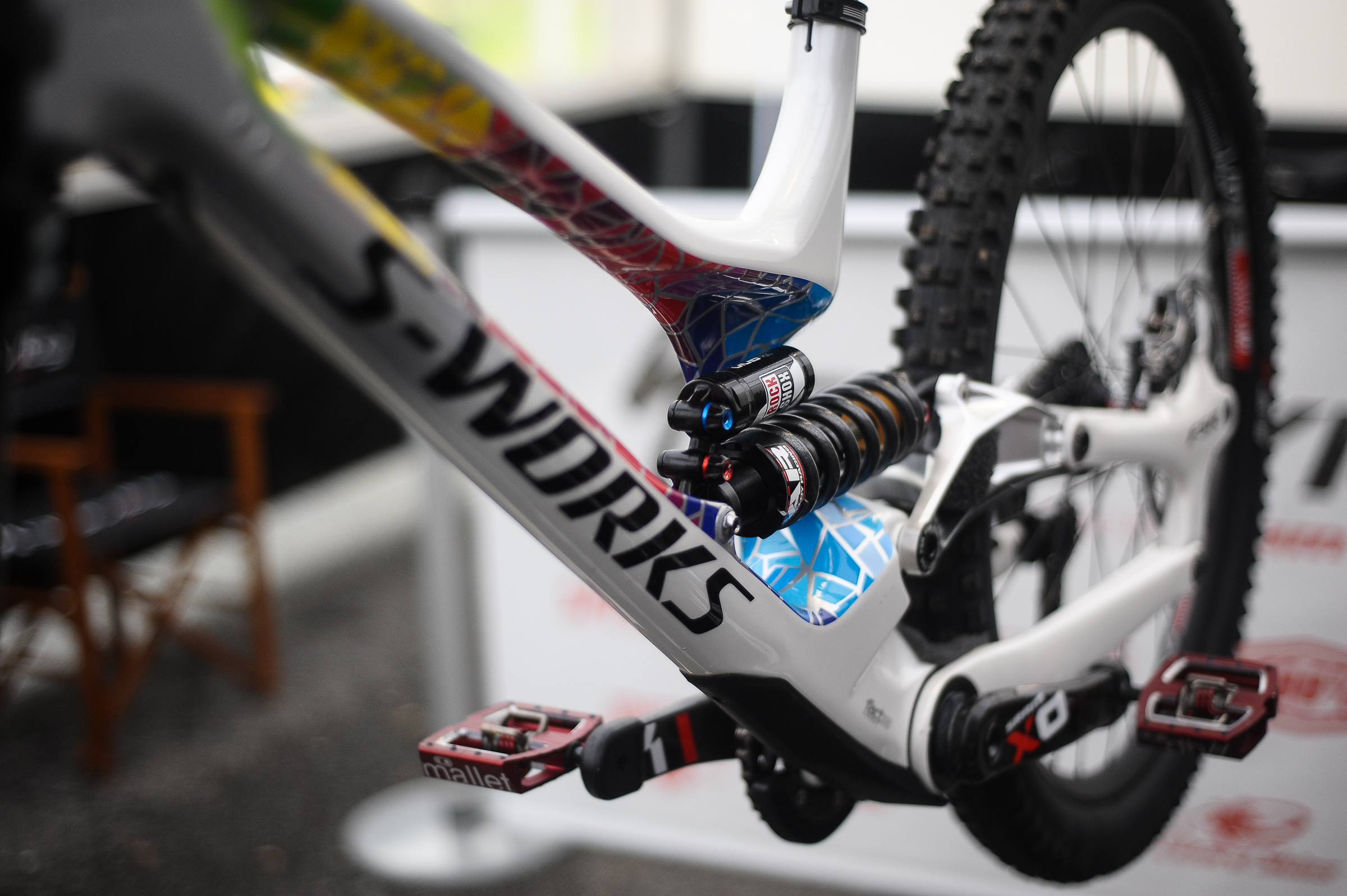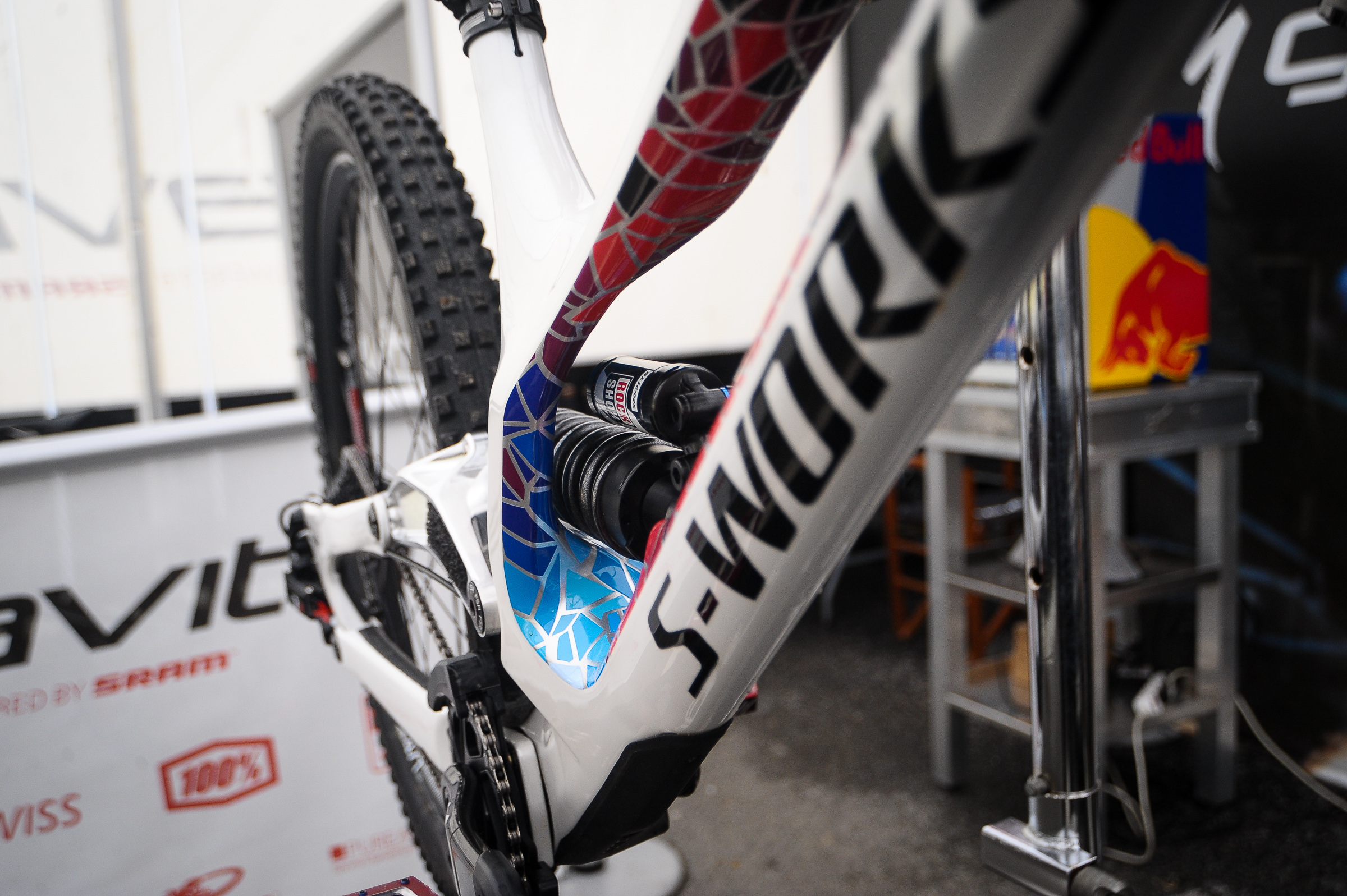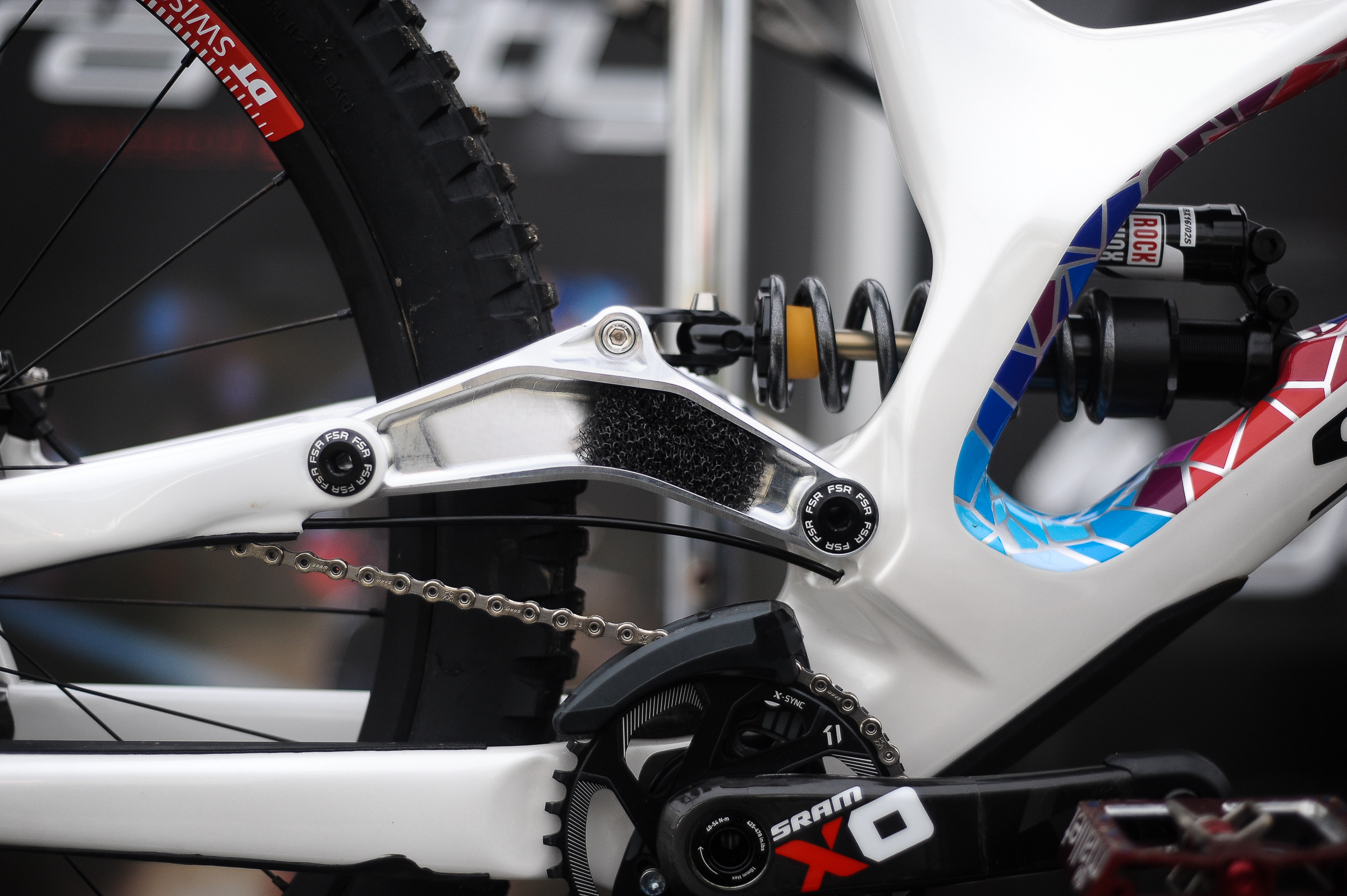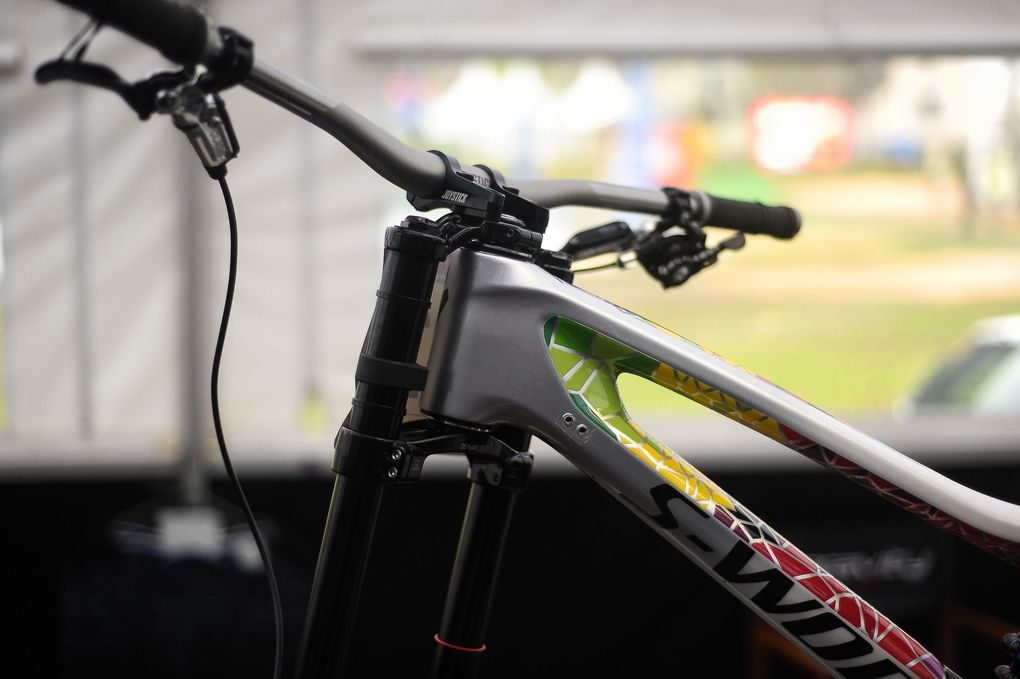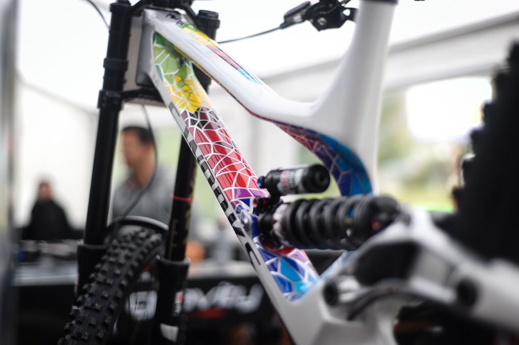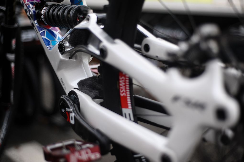 We’ve all been waiting to see some of the bits of tech popping out from the World Cup, one in particular is Loic Bruni’s Specialized Demo. And it definitely doesn’t seem to disappoint. Just look at the finish on the bike. It’s stunning. But we’ve also been hearing rumours of changes Loic has been making to the bike, one of which is the linkage.