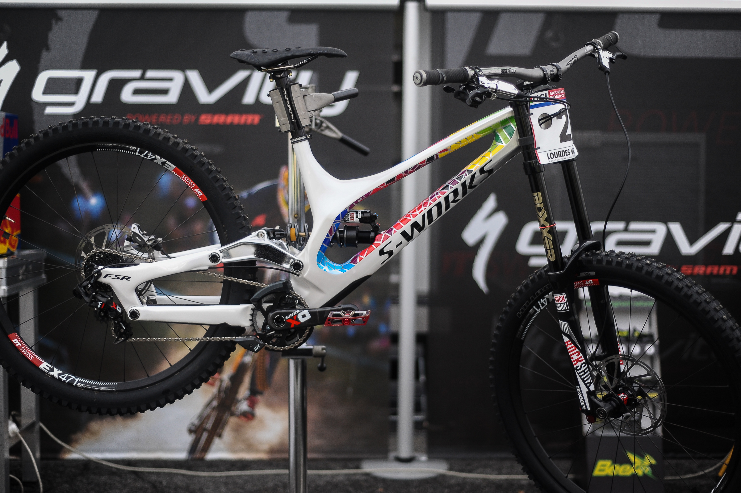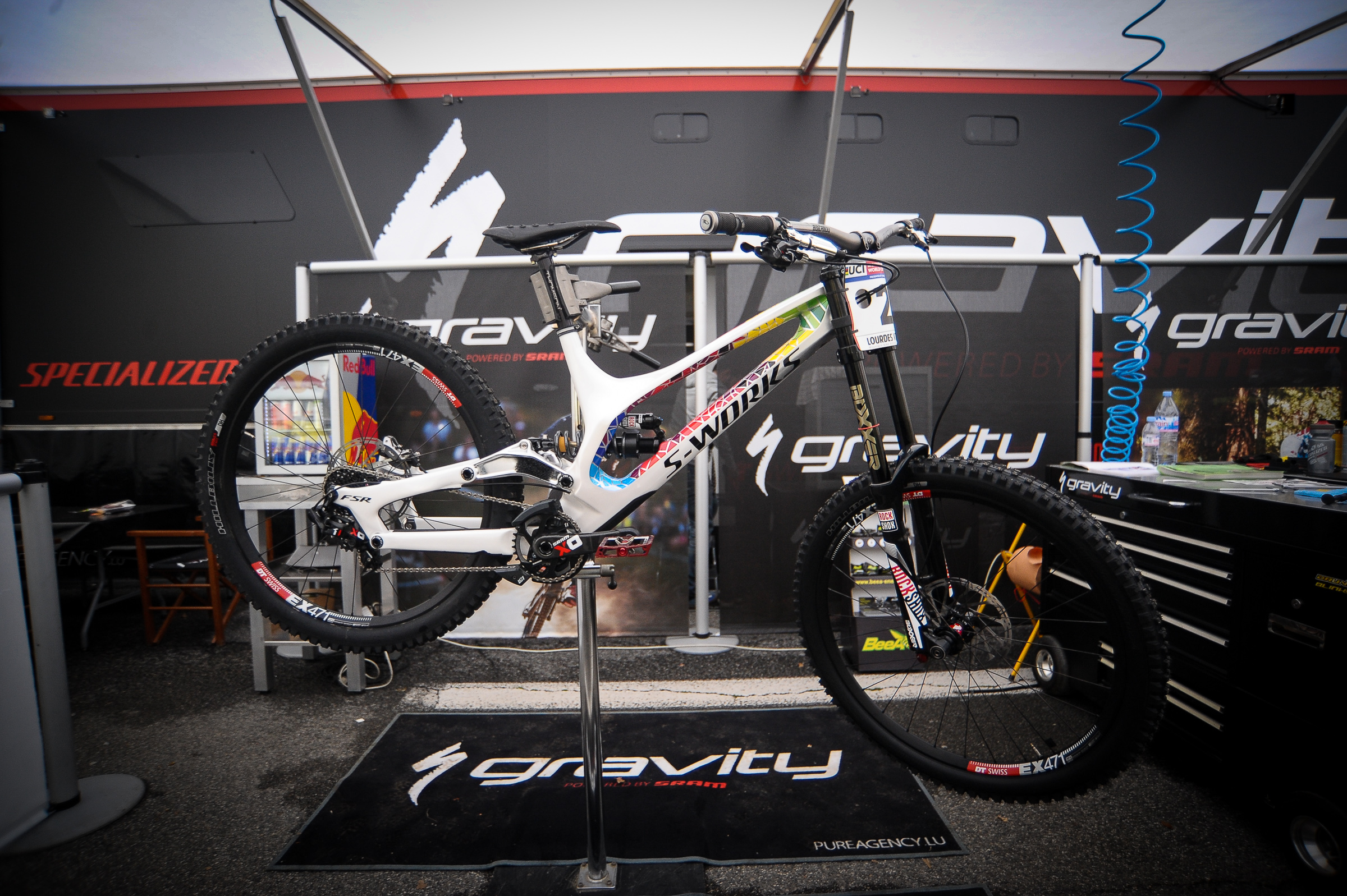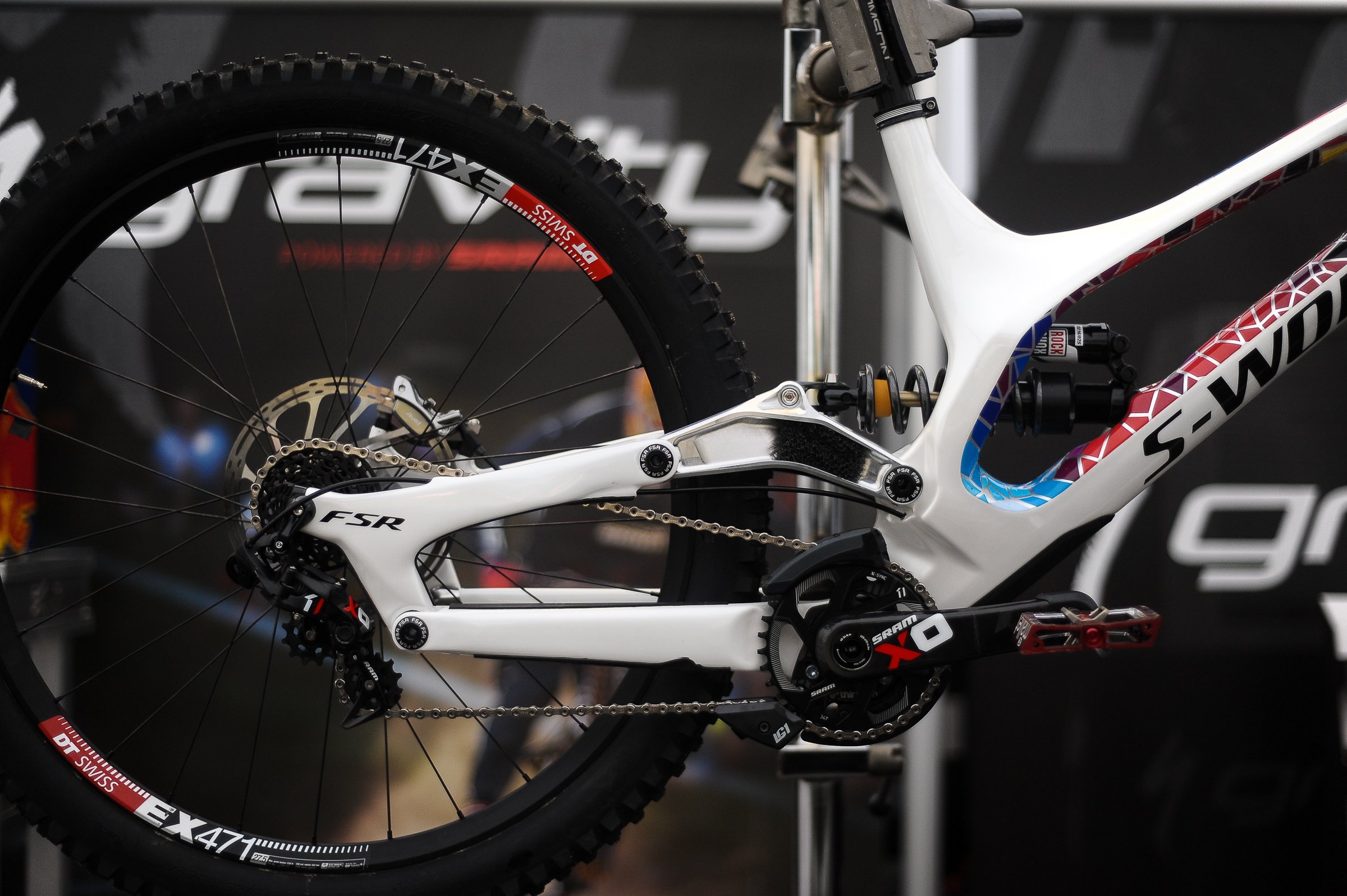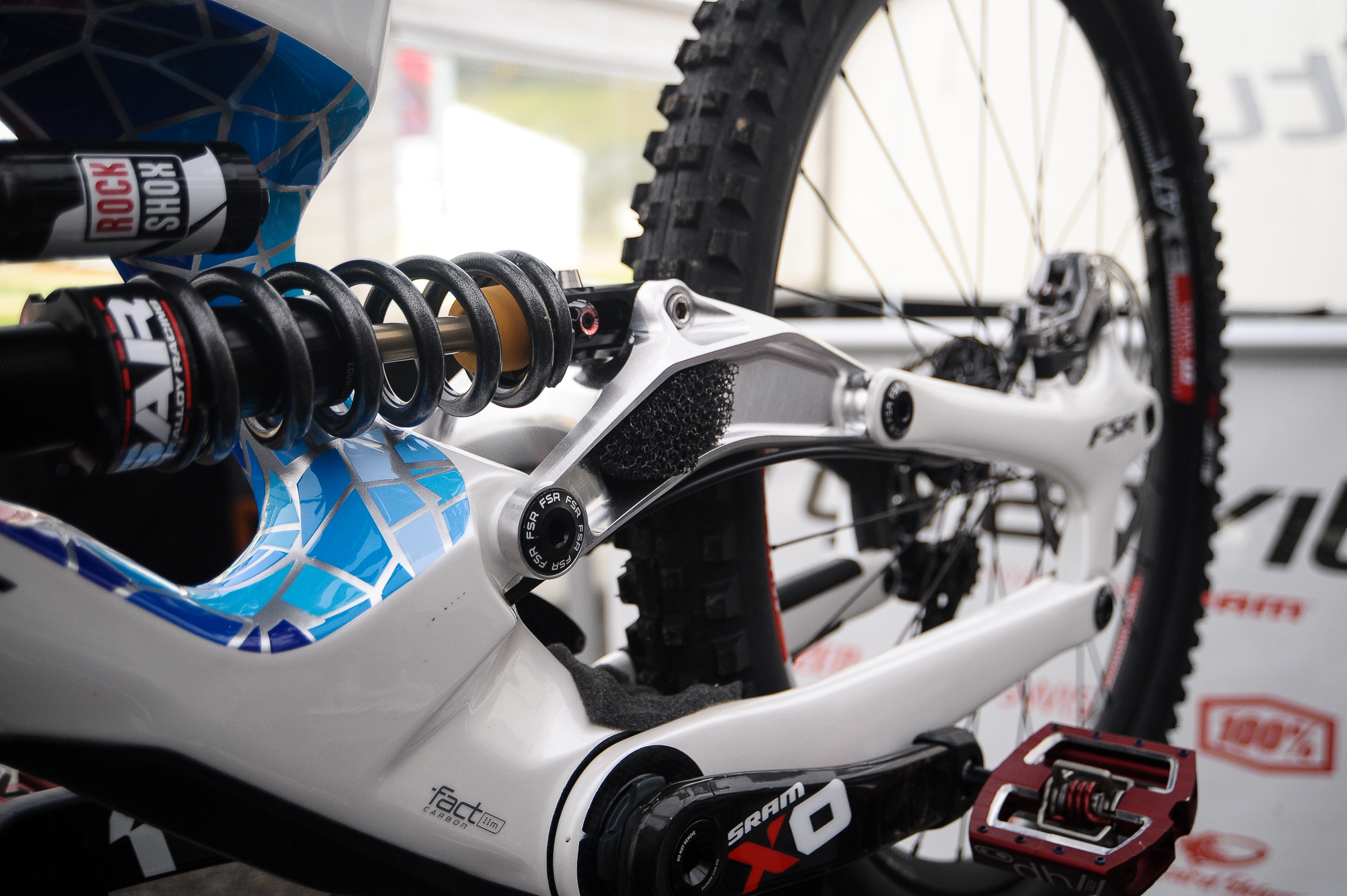 We’ve all been waiting to see some of the bits of tech popping out from the World Cup, one in particular is Loic Bruni’s Specialized Demo. And it definitely doesn’t seem to disappoint. Just look at the finish on the bike. It’s stunning. But we’ve also been hearing rumours of changes Loic has been making to the bike, one of which is the linkage.