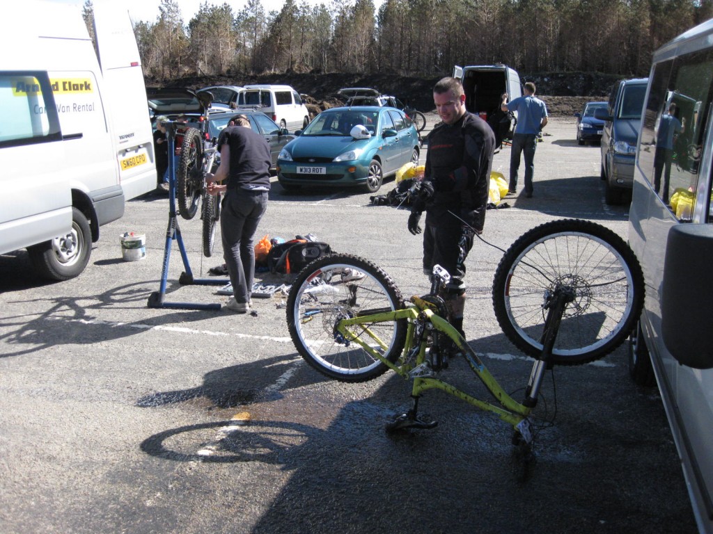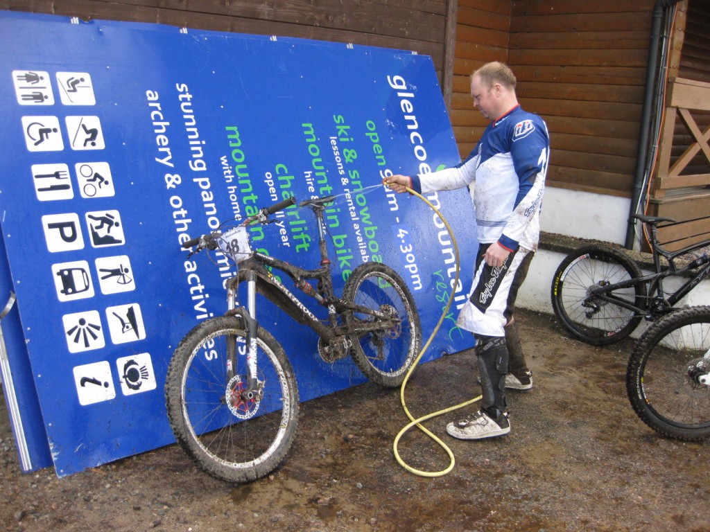 Jonathan Sunter hosing down, bagged 3rd in group C and my rigid raider Karate Monkey.
