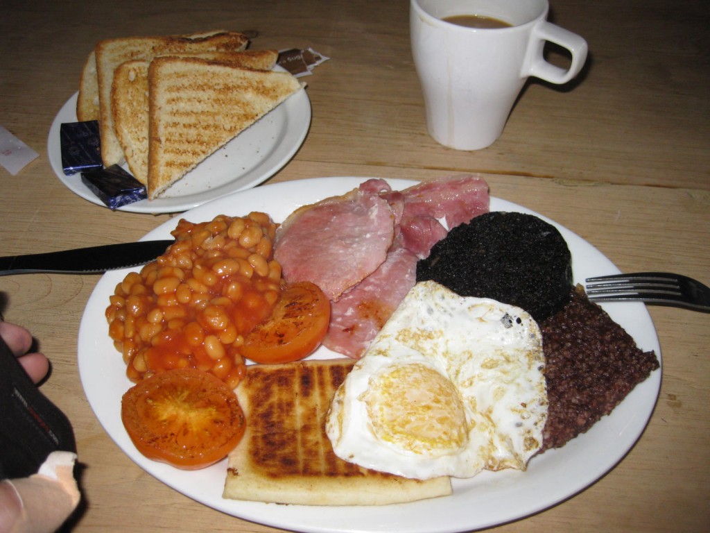 After having this fry up last year, now when I go up to Scotland I drop in to Glen Coe just for the breakfast, £6.80, kept me going until after my race, and I eat early because the climb up to the start is hard work. Bit nervous, chairlift opens, track opens from second chairlift only, I go up for a roll down.
