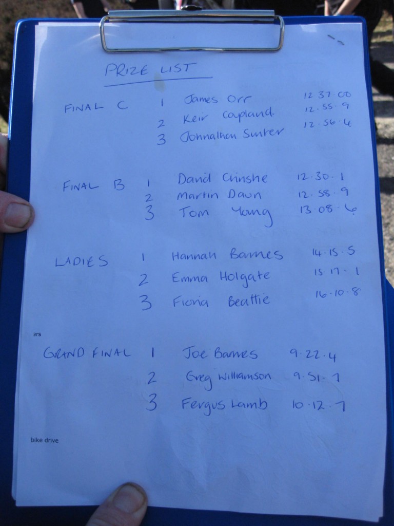 Up top is Group A top 4, Rich Thomas, then Fergus Lamb, then Greg, then Joe Barnes with this years race winning bike and the times of all groups.