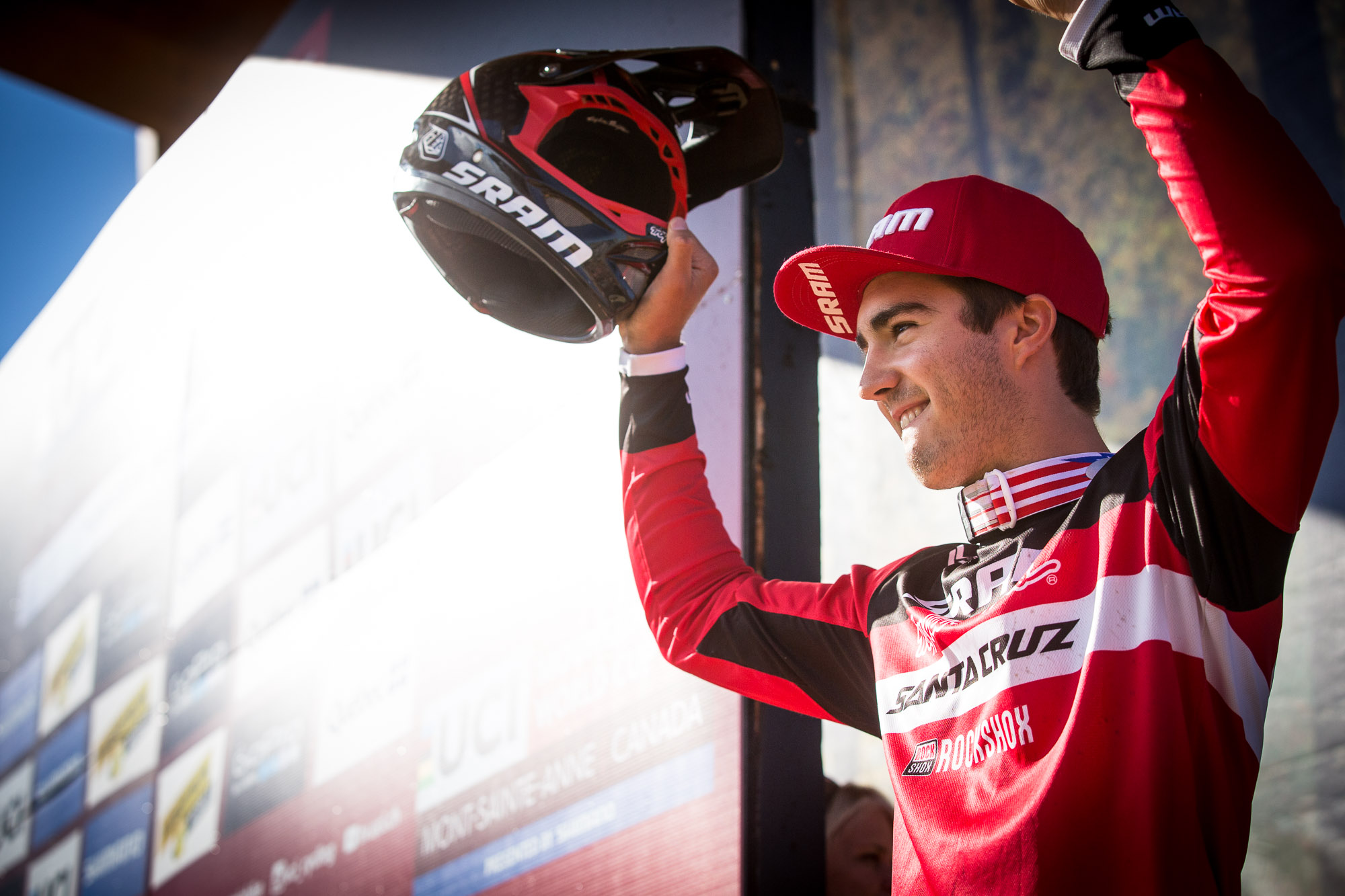 After a tough start to the season Heap has battled his way up to third in the overall with one round to go. His palms were bleeding at the bottom of the rough Mont Sainte Anne track.
