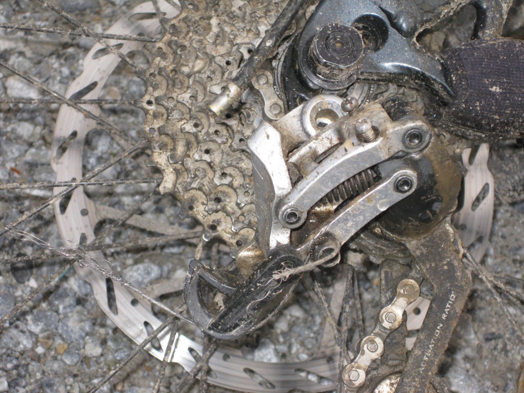 Run 7) 9.29.8 i jump on the bike and pedal to the gondola, gears skip so hit the shifter, nothing, hit it again, nothing, punch it up and down nothing. I assume the crash with Ste has taken out my mech, turns out it severed the cable, on post race checking nothing else appears damaged, hanger seems straight, i thought the mech was broken but from checking the paperwork the b-tension adjust is ment to flap about and not sprung like a shimano mech. You don’t need gears or a chain so it can be removed for the rest of race if needed.