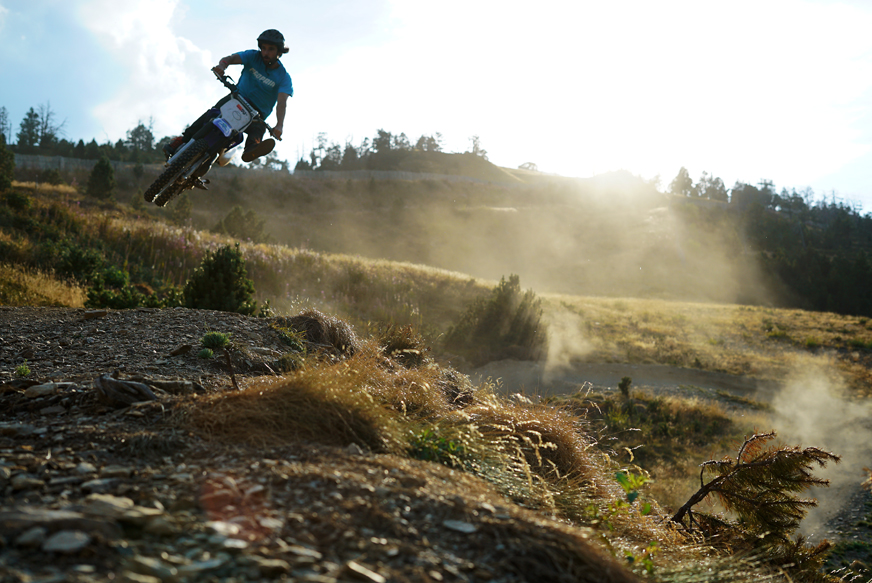 Ben Reid, team manager, letting off some steam aboard his TTR in the Vallnord valleys. These evening sessions were a good change of scenery from the hectic race venue further down the hill.