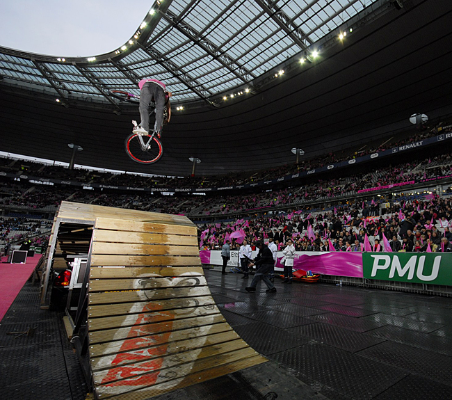 Check this out. Before a massive rugby match in France at the weekend, some of the top French Dirt Jumpers put a demo on for all the rugby fans. Lucas Stanus (the videograher) had this to say: