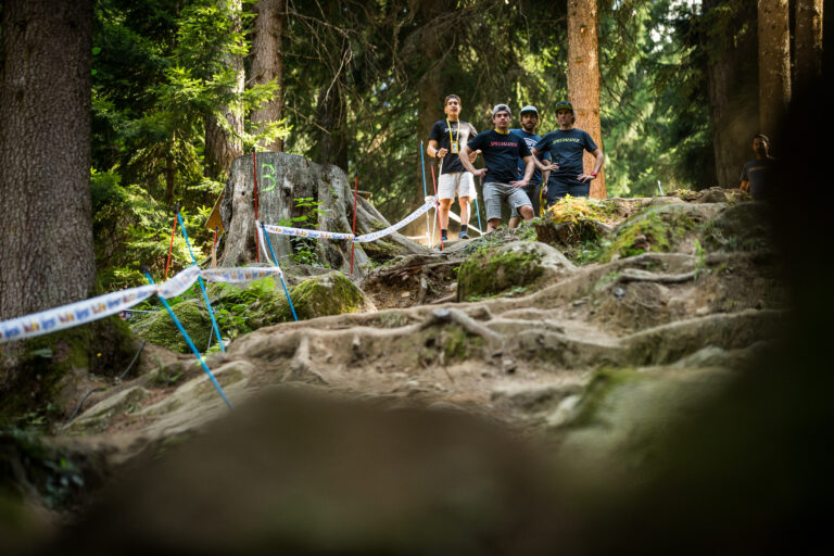 Into sector 2 and Gwin wasn’t going down without a fight. He clawed back 0.3 seconds on Hart, going fastest but only just. It was in this longer sector where the gaps really started to appear in the field. Namely Bruni, Hart and Gwin were all within 0.3 seconds of each other but over 1.7 seconds faster than anyone else in the field. To put this in perspective – from Greg Minnaar in fourth place, the rest of the top 20 were only covered by another 1.3 seconds. These three were clearly in a league of their own through sector 2 although notable others included Dirt Propain Zelvy’s own Phil Atwill in fifth place for the sector.