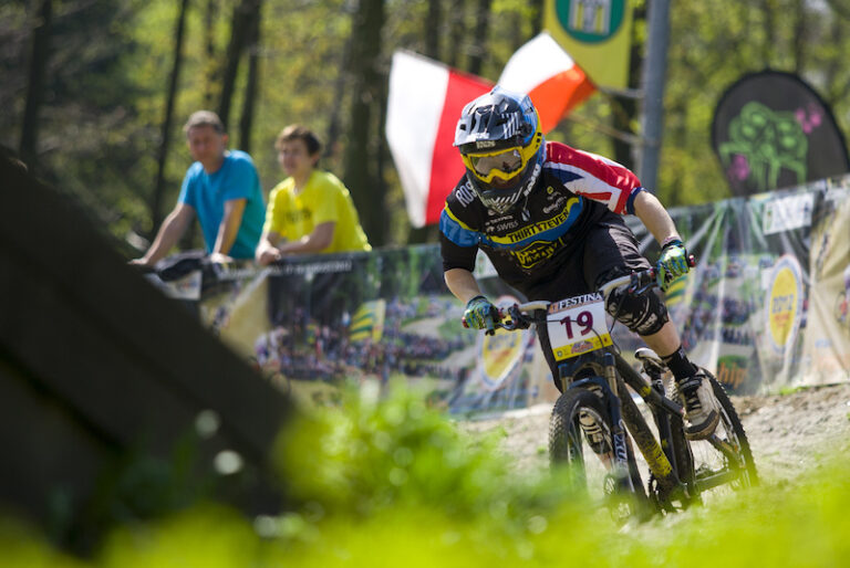Scott Beaumont hits up the first round of the 4x Pro Tour under the flood lights in Poland.