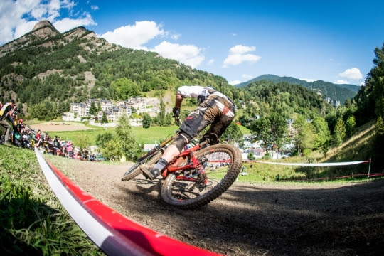 Laurie Greenland and the Trek World Racing it up Vallnord, Downhill World Championships.