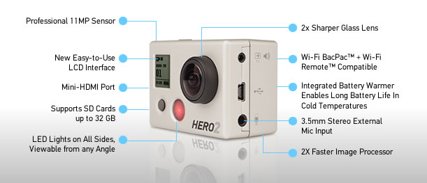 Our favourite helmet camera the GoPro HD Hero gets even better with the release of the HD Hero2 The Hero2 gets a new 11 megapixel sensor,...