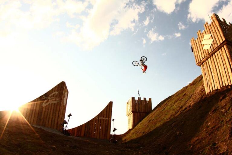 Antoine Bizet throws the first DH double backflip at Nine Knights 2013.