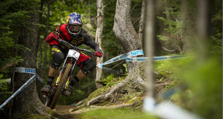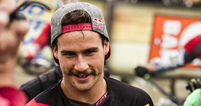 Stevie Smith qualifies fastest here at the final round of the UCI DH World Cup, here in Leogang.