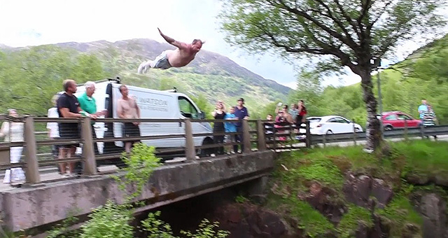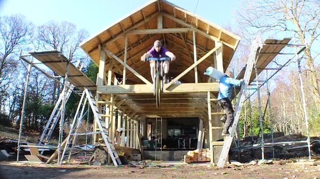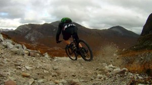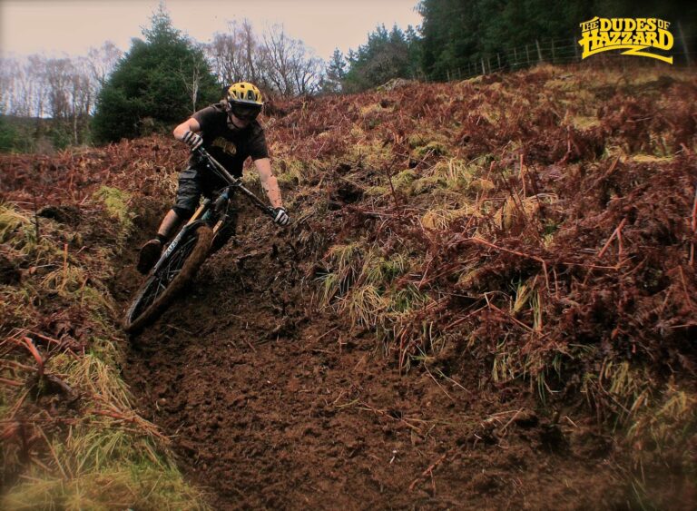 Uphill dual slalom on trials bikes, razzing mountain bike and of course Liam jumps in a loch