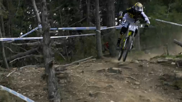 Loic Bruni takes a flat out run down the 2015 Vallnord World Champs track.
