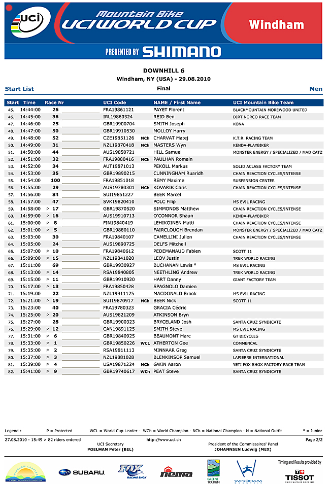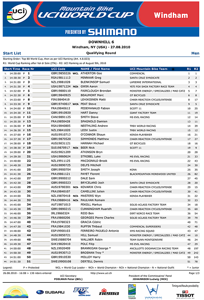 The complete list of who has signed on for downhill and 4x at UCI World Cup round 6, Windham, New York. 130 DH men, 25 DH...