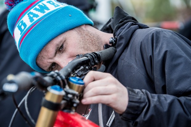 I’ll start with a bit of background. We mechanics are all different, and there are some impressive and surprising CVs standing behind those toolboxes in the pits, but my story goes like this: I started in bike shops after school, and worked in a busy one in Edinburgh throughout my degree in Mechanical Engineering at Uni. After graduating I did a season in Whistler and when the guilt/fear set in I came back to Scotland and got a job in an Aerospace Engineering company and stayed there for two years. Towards the end of the first year I started to realise that the office life perhaps wasn’t for me, and once I got the idea into my head it was hard to shake.