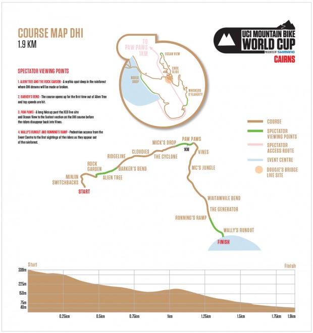 If you hadn’t worked it out, or never listened in geography then Cairns is under the big red pointer on the above map. That pointer isn’t actually there but what is in Cairn’s is the next World Cup Downhill track, this is what it looks like from Mick Hannah’s head…