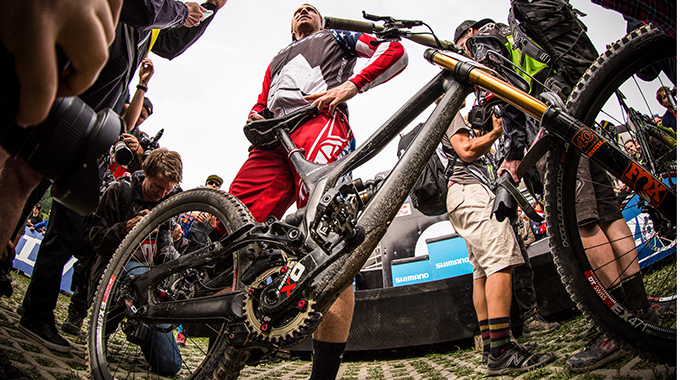 A top ten in his first season, a podium in his second, Gwin marked himself out early as hot property in the pits. His partnership with the greatest mind in downhill, Martin Whiteley, created an unstoppable force. Four wins on the trot, nine in two seasons, the broiling clouds had become a deluge and in the eye of the storm was a new American hero.