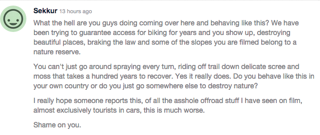 HOWEVER:Â Just noticed this (below), among other similar to it, on the Vimeo comments… Does anyone have any more to add about not straying from the trail in Iceland?