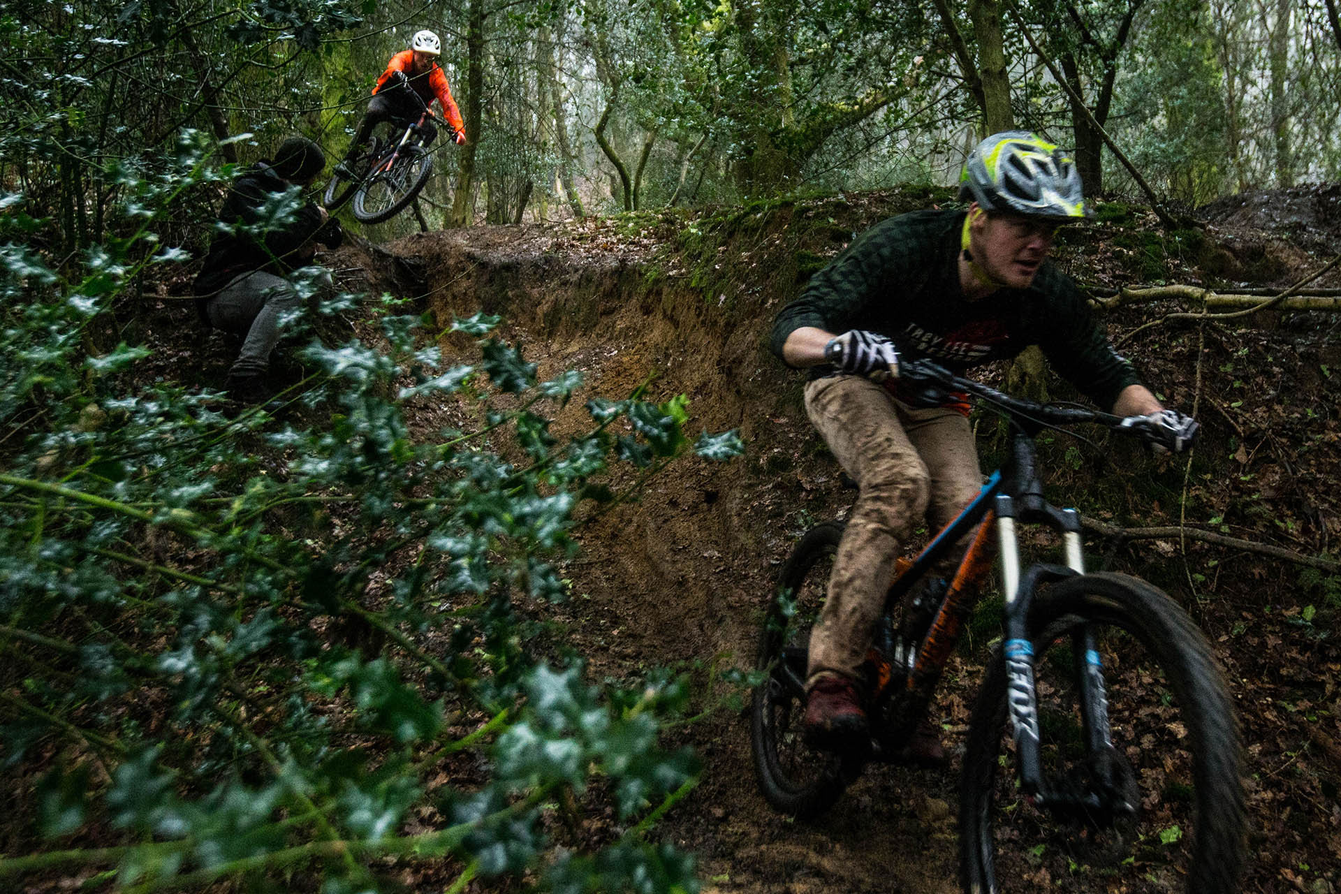 Jono wore khaki chinos all day and got peer pressured into just about everything. He definitely chose the right day to jib off university – that’s for sure. Then Brendan decided to blow everyone out of the water by gapping about 15ft directly into a bombhole with a foot deep bog at the bottom. Filming ended at everyone’s favourite spot, Peaslake. Whips and scrubs galore as we shot on an A-Line looking set of jumps, with Jono’s screams echoing through Surrey as he was convinced he was going to chainring the lot of them.