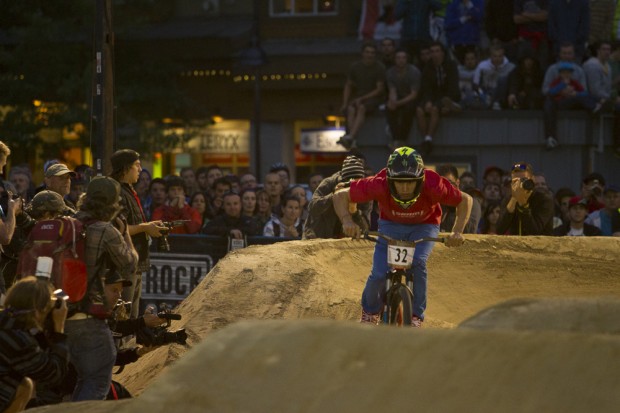 The bright lights of the Olympic Plaza shone down on the Crankworx Pumptrack Challenge at Crankworx 2013.
