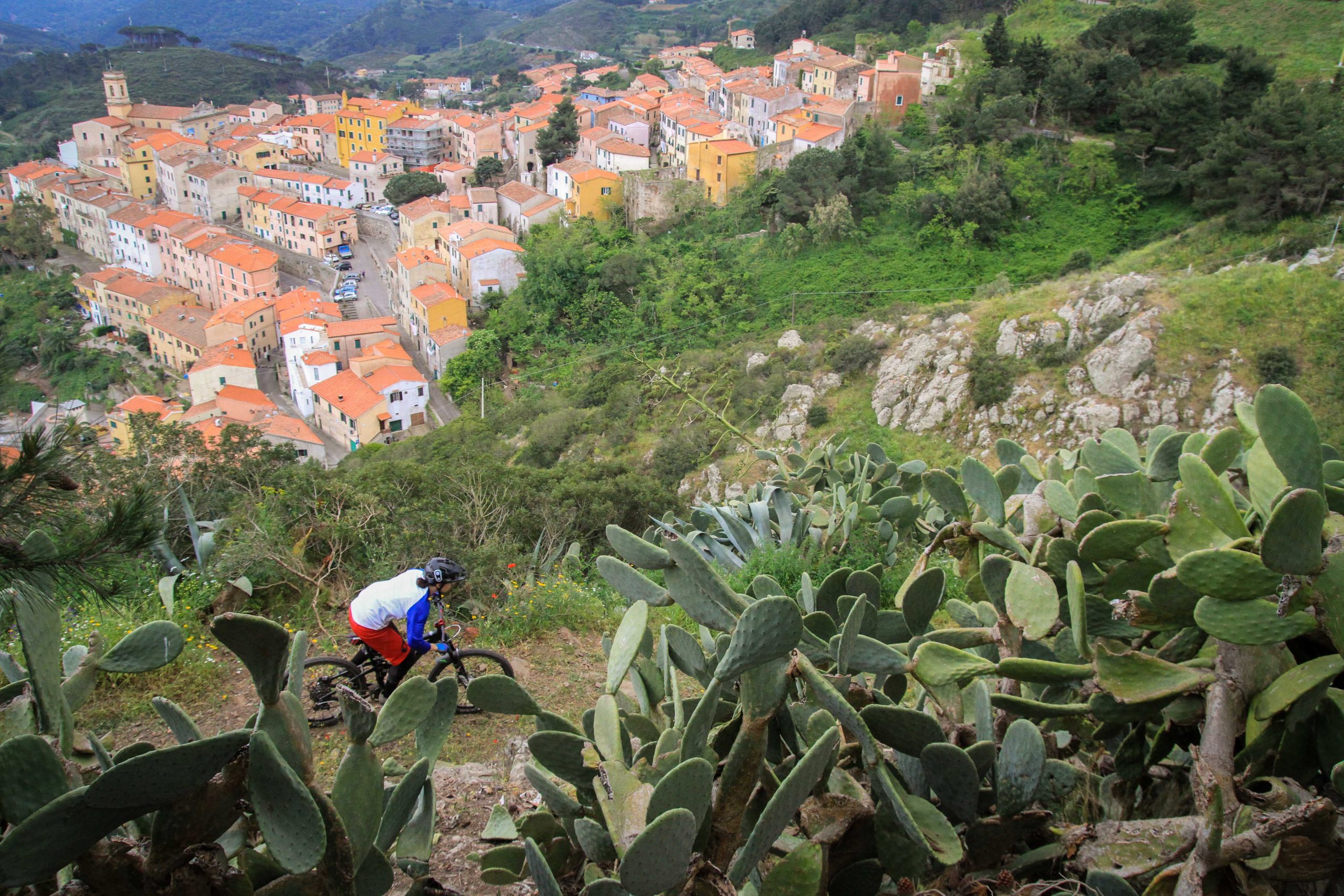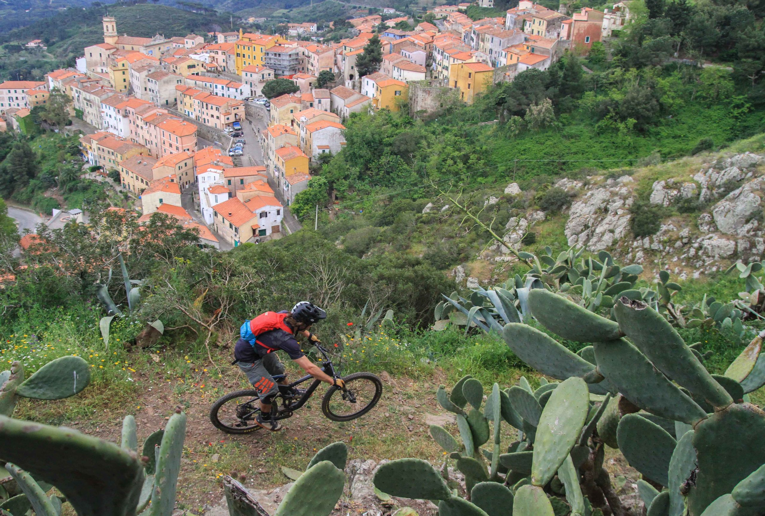 We were greeted by Dario from Elba Gravity Bike and all piled in the Mercedes uplift wagon to make our way up through the steepest cobbled streets I have ever encountered. The road looked so polished I genuinely closed my eyes in fear at one point, completely unable to justify how the van had any grip! We were with an E-bike riding photographer, Alex, so it was probably that battery pack weighing the van down…