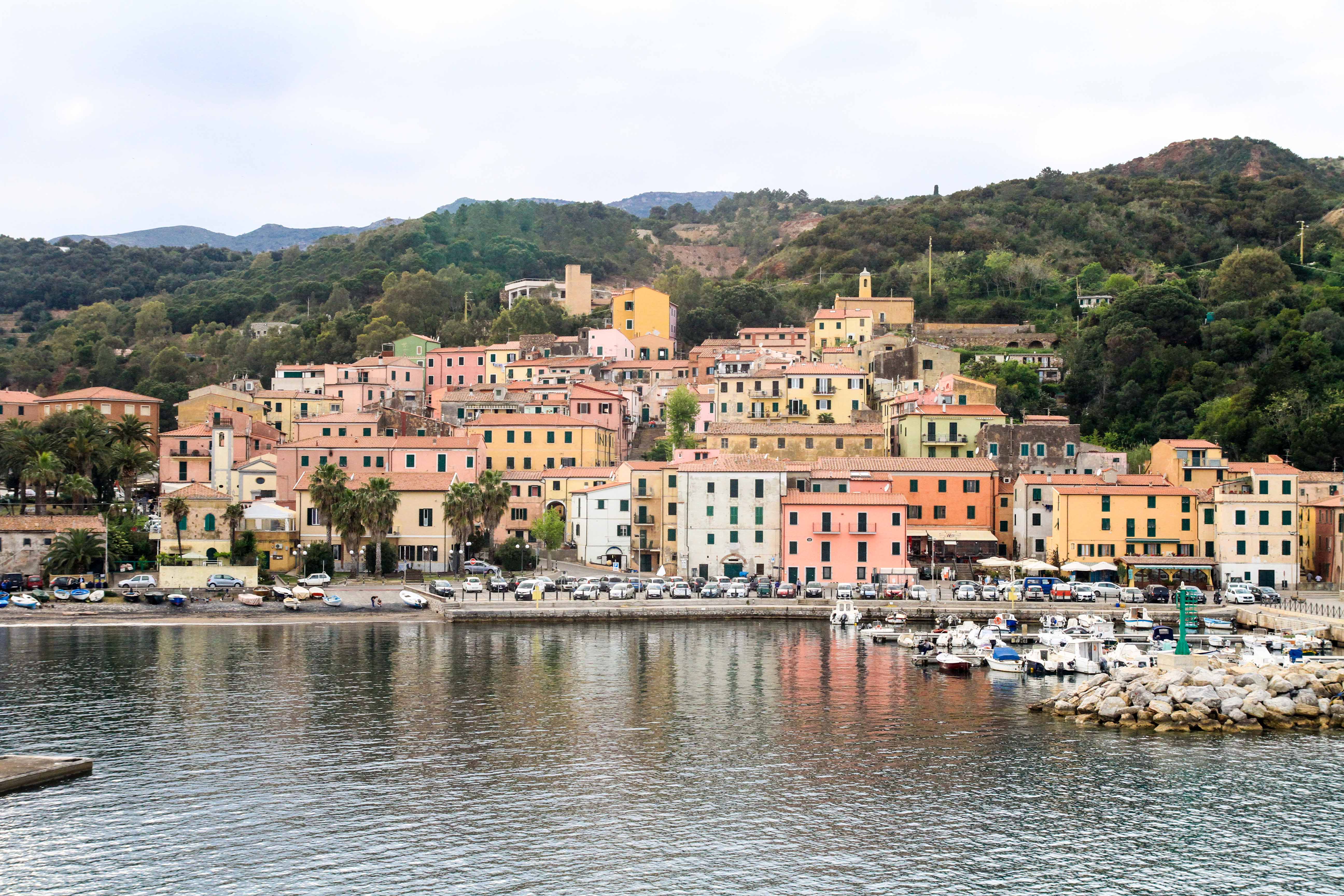 At 5 am we jumped on a ferry from Piombino excited but definitely in search of the coffee bar. The ferry took less than an hour and swinging into the harbour it was like stepping into a page of lonely planet. Typically picturesque pink and yellow villas stacked up the hill and fishermen bringing in their catch to sell harbour side.
