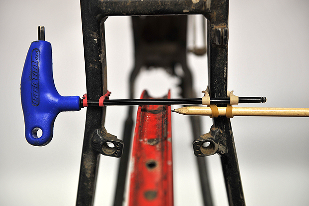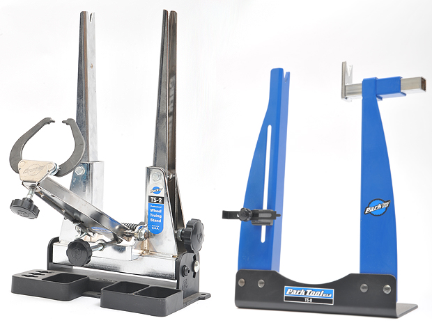 A truing stand isn’t essential, and you’ll see a free alternative below, but there’s no doubting that they make the job easier. There are a whole load of different designs out there, ranging from the insane £1399.99 DT Swiss one right down to far simpler designs that cost around £50. The two shown above are both made by Park and the one on the left is the TS-2 which you’ll find in most bike workshops. At £259.99 I doubt many home mechanics will be able to justify it though, but the TS-8 on the right is a bit more reasonably priced at £124.99. In general the more you spend the quicker and easier they will be to use, but with a bit of patience you should be able to produce just the same results on a cheap one.