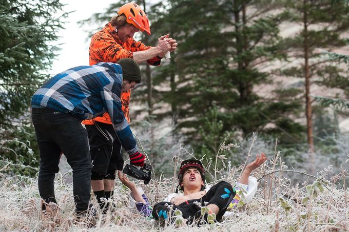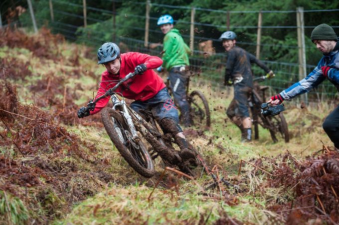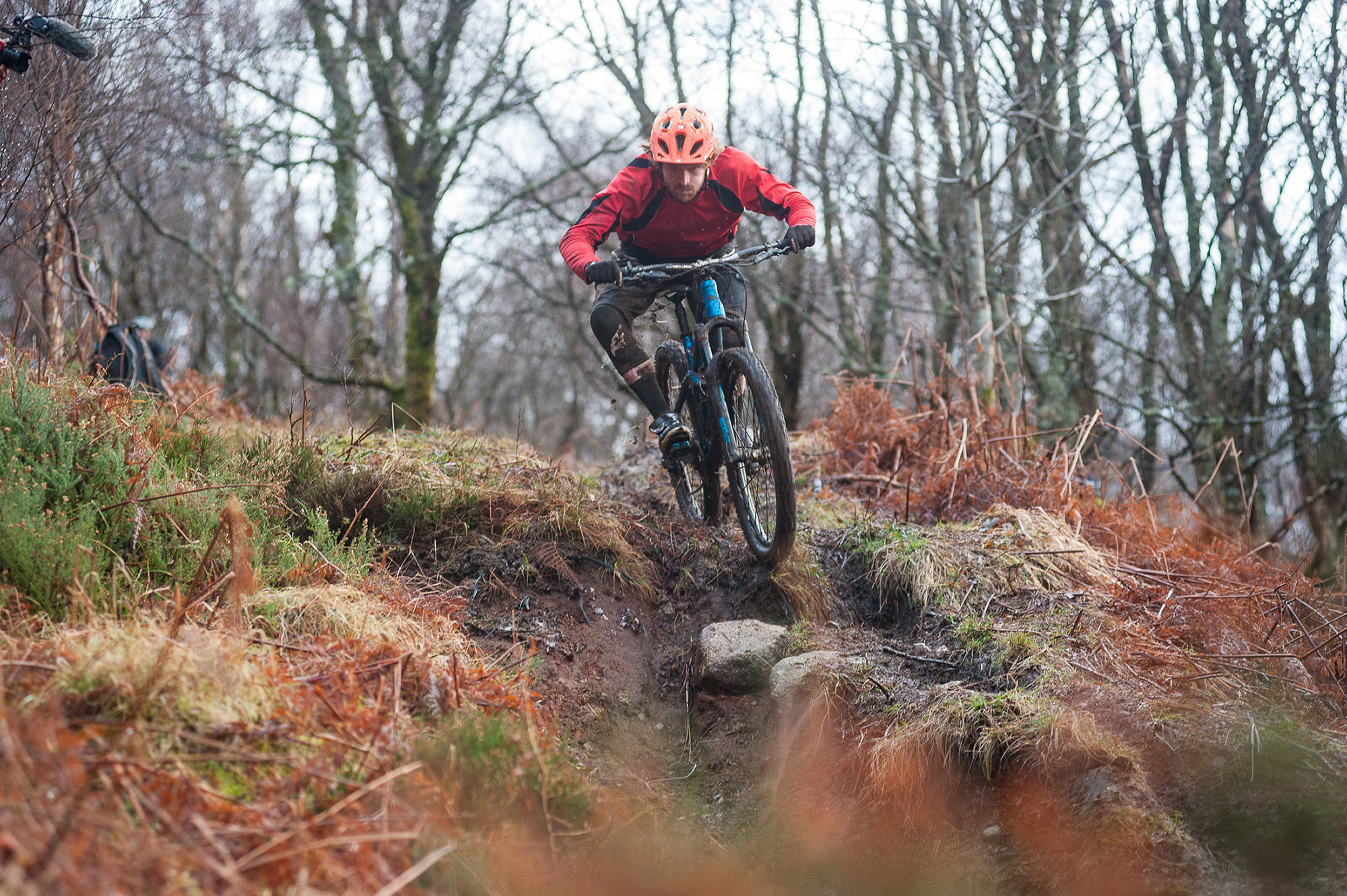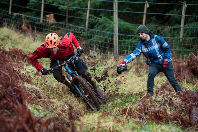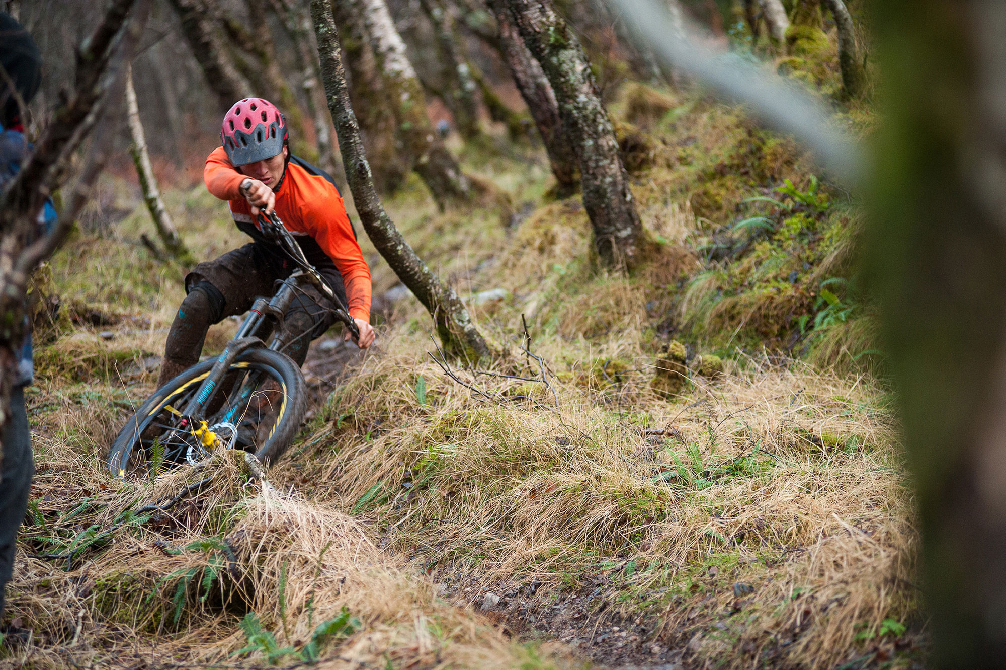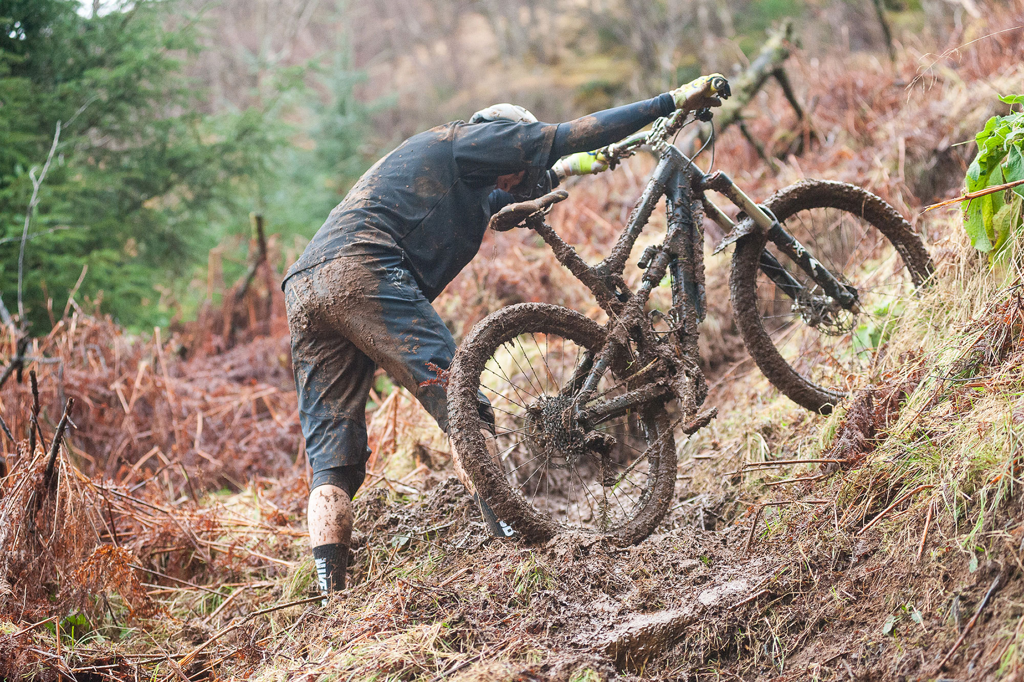 The outlook was bleak driving past Glasgow in heavy snowfall, but filming began by boiling a kettle to defrost EVERYTHING, and that pretty much set the tone – minus 6, frosty ruts, and very, very cold ears. We sat down in Wetherspoons with Liam Moynihan of the Dudes of Hazzard, and the up and comer Lachlan Blair as soon as we arrived, to try and rally as many Scottish riders to Fort William as possible. Kenta Gallagher, Rampage Ryan and Ben Cathro joined us. Cathro was the only one rocking a 29er – and was dually mocked for this – but holy cow he can ride the balls off of that thing. I didn’t know 6” 7’ could go round corners like that!