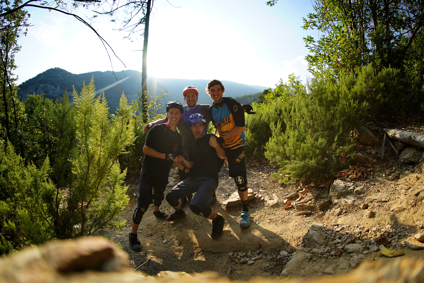 After the 40 minute uplift to the top of one of many hills in Finale, we were ready to ride, or at least try to ride on probably sub 2 hours sleep. The coffee seemed to work a treat along with a dose of excitement as Paulo from RideOnNoli uplifts showed us some hidden trail gold. Couldn’t even tell you vaguely where we were.
