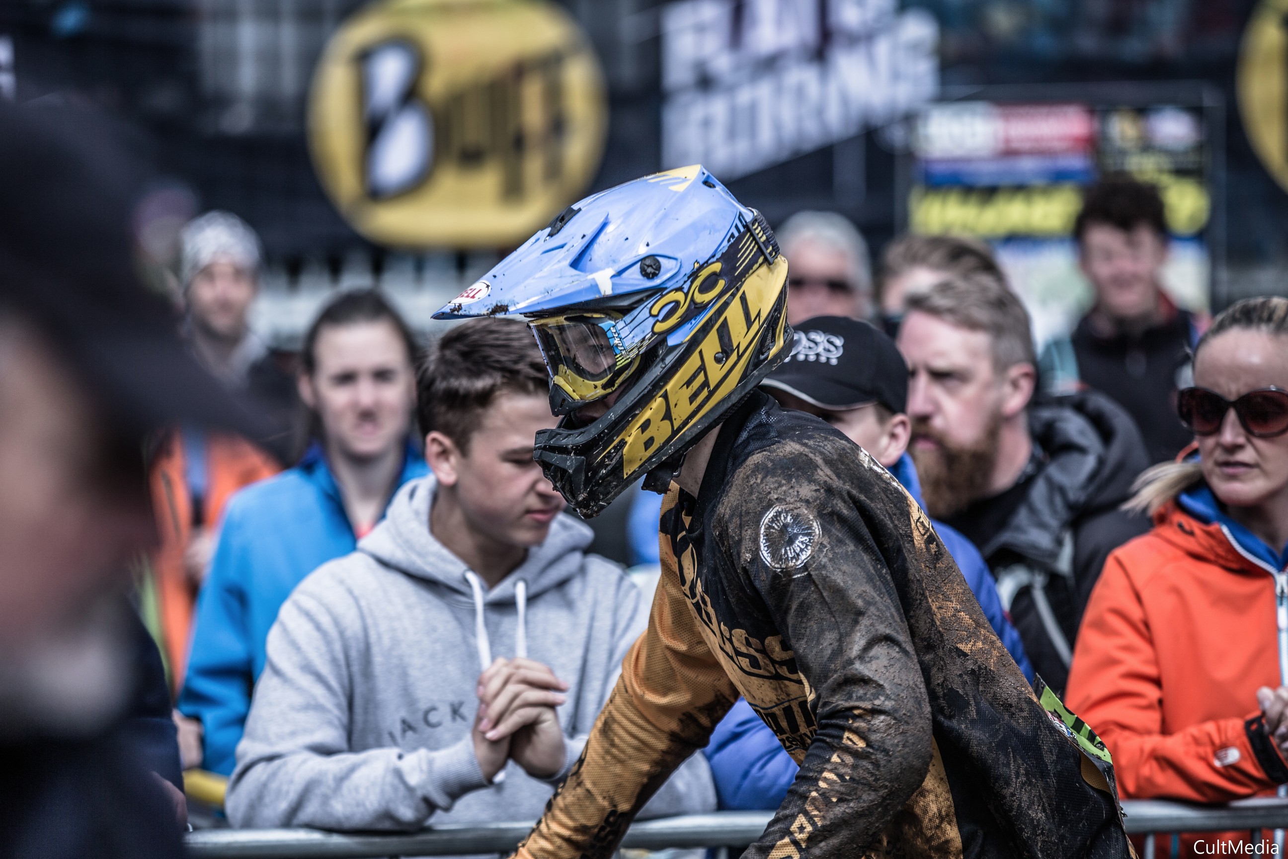 Race day and the Sun was out. The fans piled in and the stage was set for a epic race. Unfortunately our junior riders, brothers George and Henry Kerr both fell in race runs and didn’t clinch the results the splits showed possible. Luck was also not with Mr David Trummer, who suffered a mechanical on the top section of the course, ending his run.