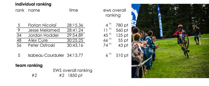 Florian was consistent and ended up 5th which put him in fourth overall of the EWS. He was literally flying over the technical sections and carrying speed all the way down. Jesse Melamed had an impressive day and signed his first European top 10 ever. In good form and managing the gnarliest section of the race with some insane lines… True Whistler style!