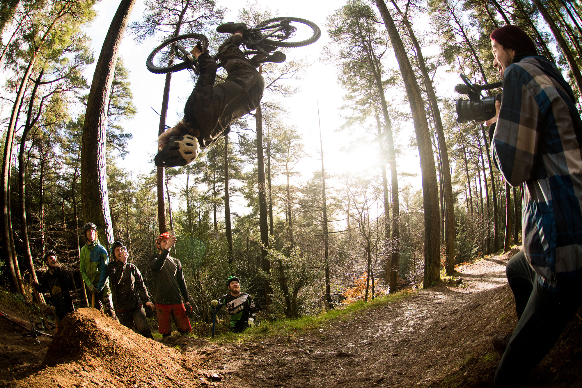 Joe originally learned backfilps to dirt on our trip to Kamloops way back when. With foam pits and mulch landings under the belt, he thought that the lens of Tommy C, a rather suboptimal soft as hell lip in a sodden Cumbrian forest and a handful of cheerleaders for support was the perfect environment to get accelerate his learning, not sure it quite went as planned!